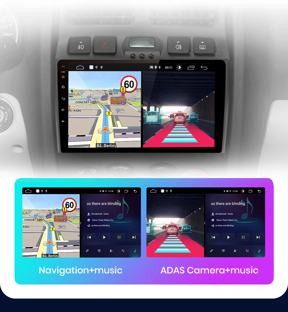 Вы можете использовать навигацию и другие приложения одновременно, такие как прослушивание музыки или включение функций ADAS и т. Д.