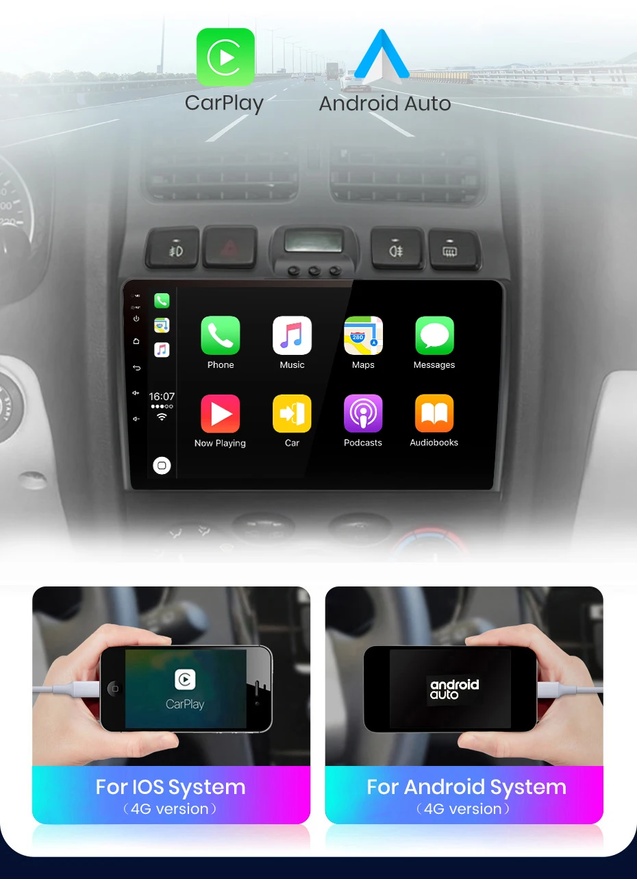 Bulit in CarPlay4G+64G supports, easy to handle iPhone while driving