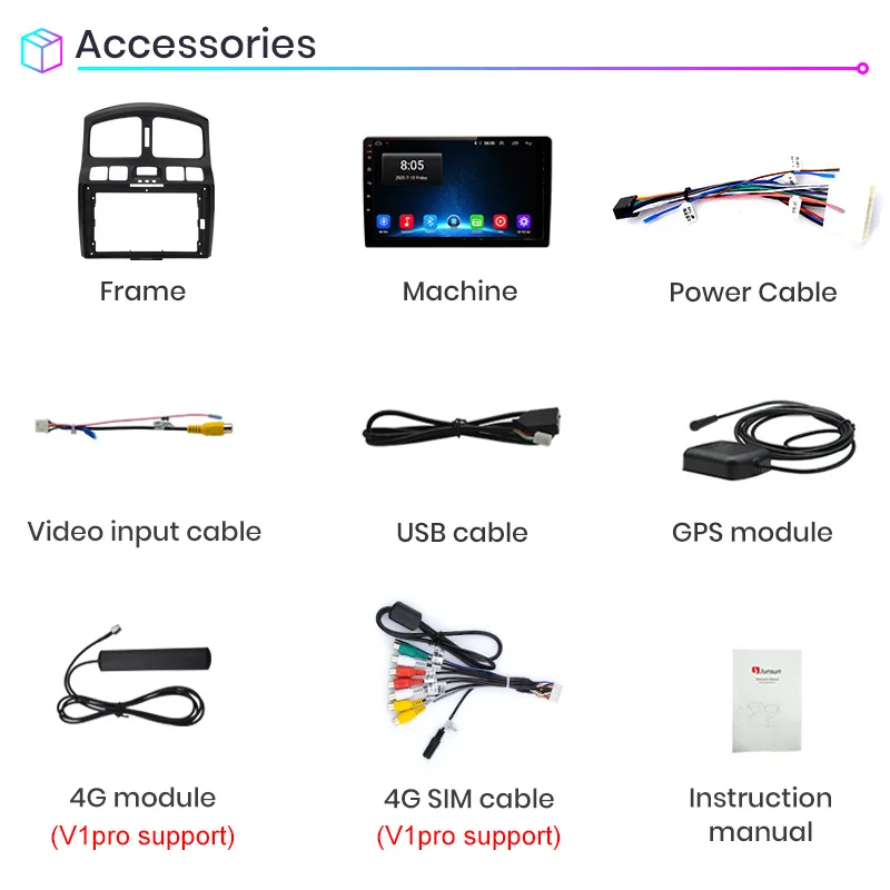 1. Штифт-штифт: Кабель питания Junsun radio' является штифтом для штифта, прост в установке;2. Встроенный Carplay/ Android Auto: Поддержка версии V1Pro, просто используйте кабель телефона, подключите его, стабильный и простой в использовании; (V1 поддерживает только Android Auto, но нужно покупать; V1C не поддерживает)3. Поддержка подголовника: только поддержка версии Junsun V1;