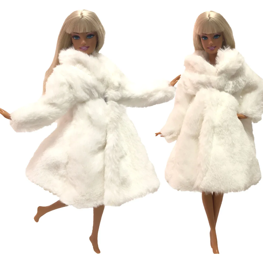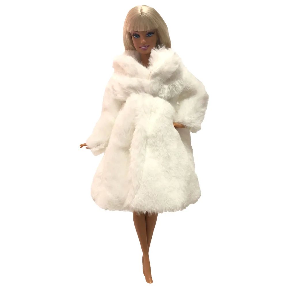 NK 1x кукла белая с длинным рукавом мягкая меховая Шуба Платье зимняя теплая Повседневная Одежда Аксессуары Одежда для куклы Барби детская игрушка 02D 5X