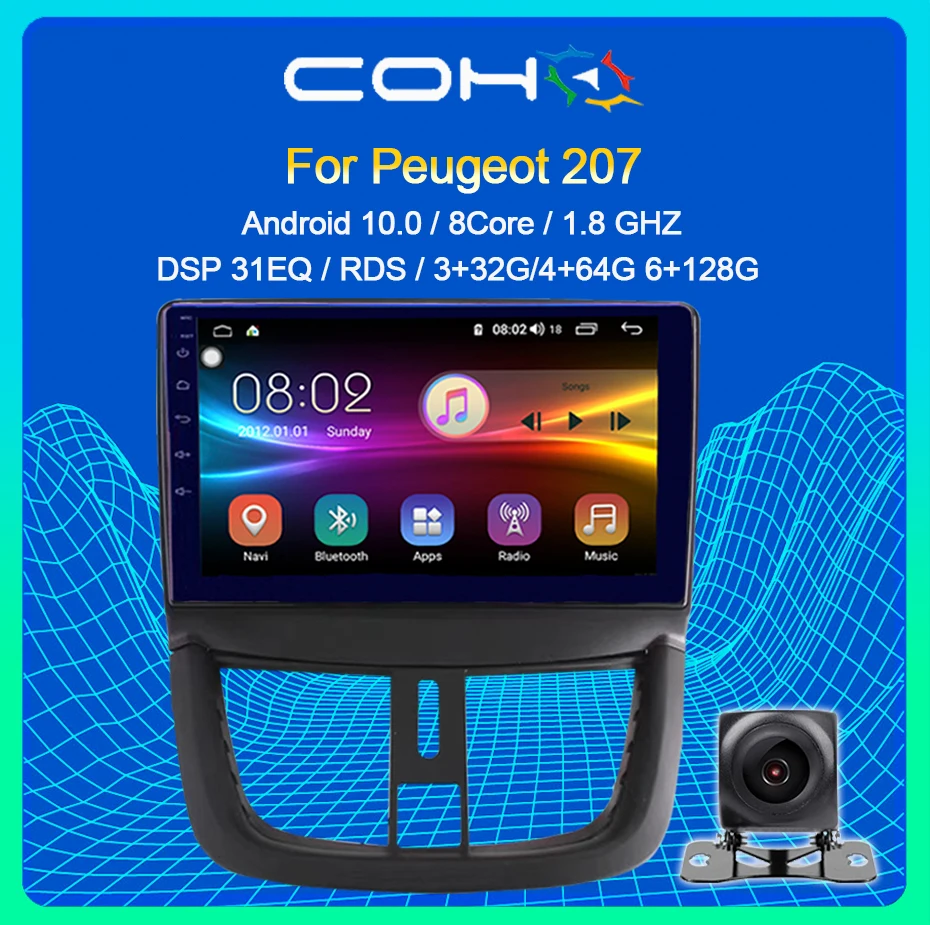 COHO для Peugeot 207 Car Multimidia плеер радио Gps Навигация стерео Ips экран Android 10 Восьмиядерный 6 + 128G