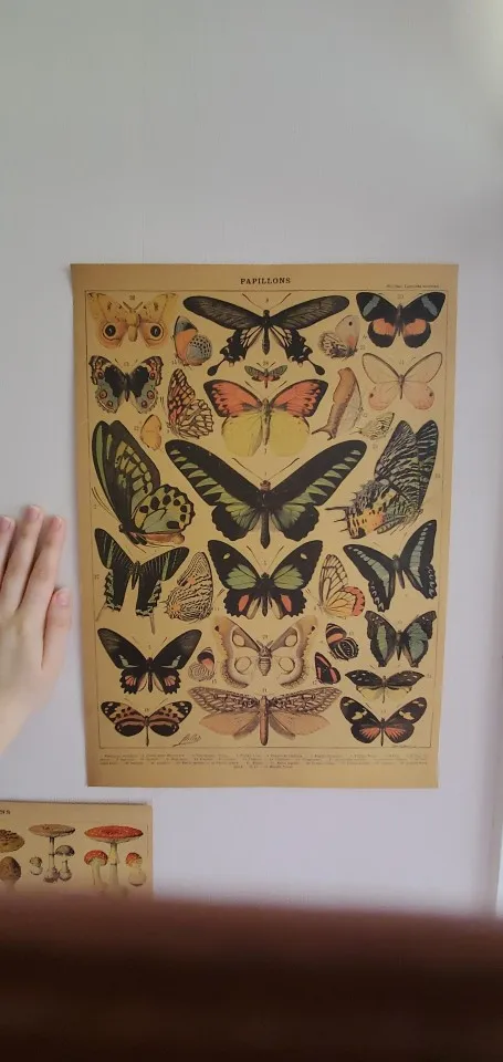 Винтажные плакаты Адольф Милло энциклопедия бабочка грибы травы цветы насекомые классические наклейки на стену ВИНТАЖНЫЙ ПЛАКАТ