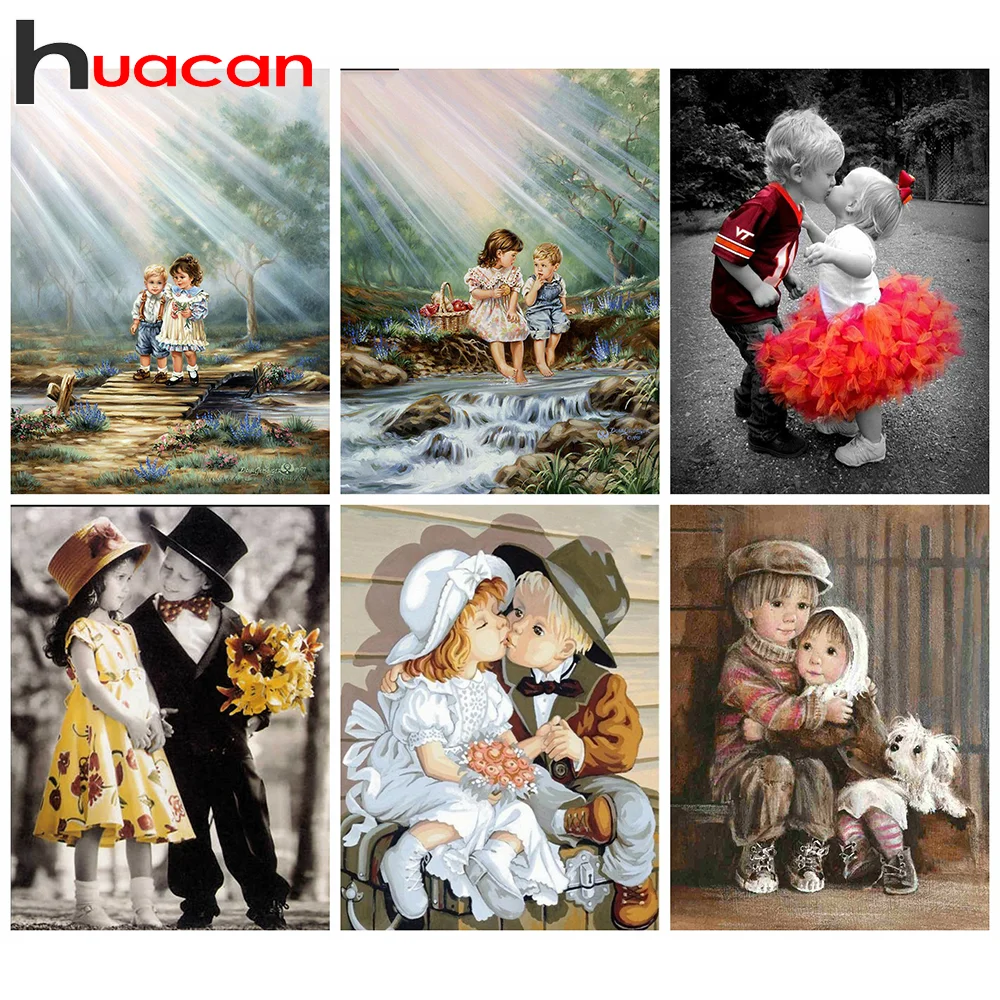 Huacan Алмазная вышивка люди Полная площадь Алмазная мозаика дети вышивка крестиком декор для дома