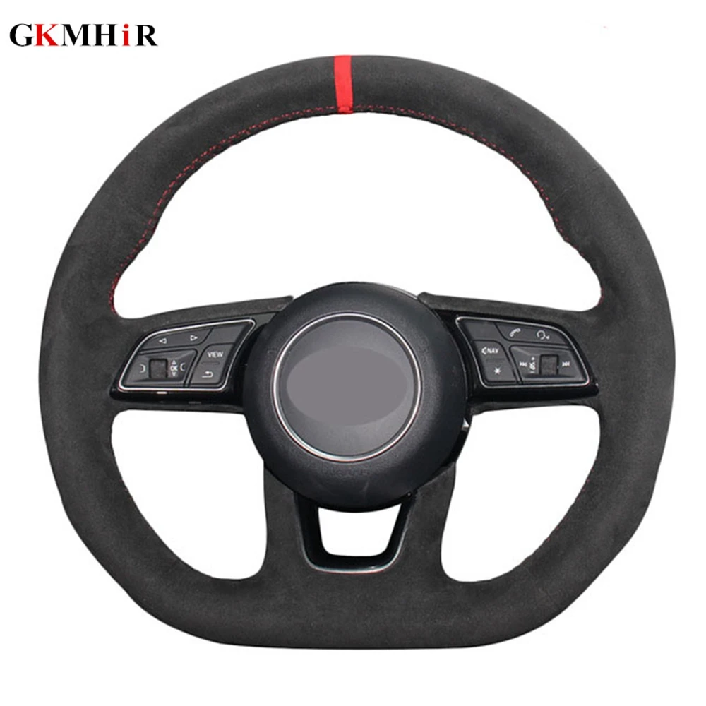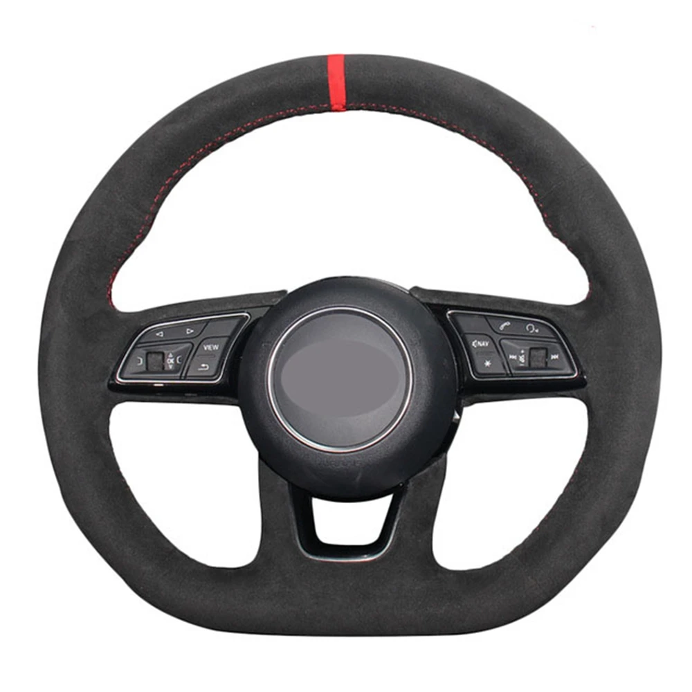 Черная замша Вручную прошитый чехол рулевого колеса автомобиля для ...