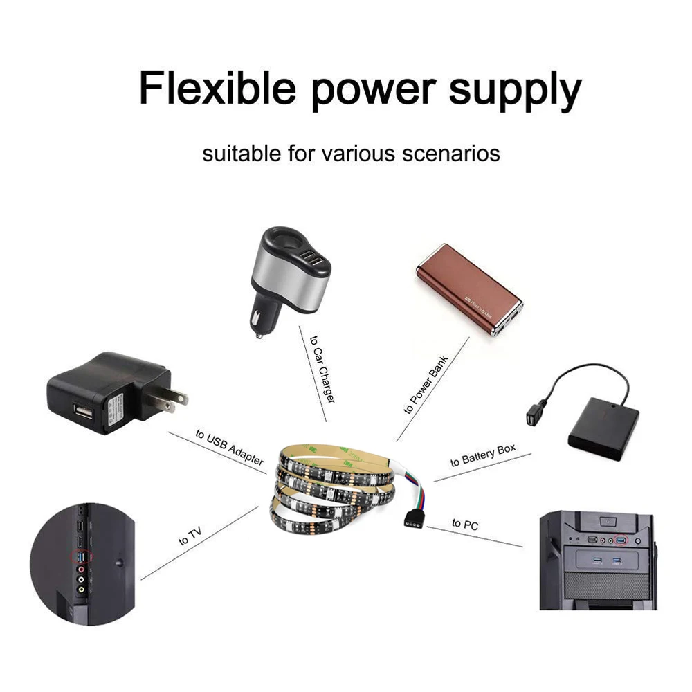 1. Супер яркий 5050SMD DC 5 В RGB цветной сменный светодиодный светильник, энергосбережение, высокая интенсивность и надежность (достаточно безопасно для прикосновения) Питание от аккумулятора IP65 Водонепроницаемый RGB светодиодный светильник.