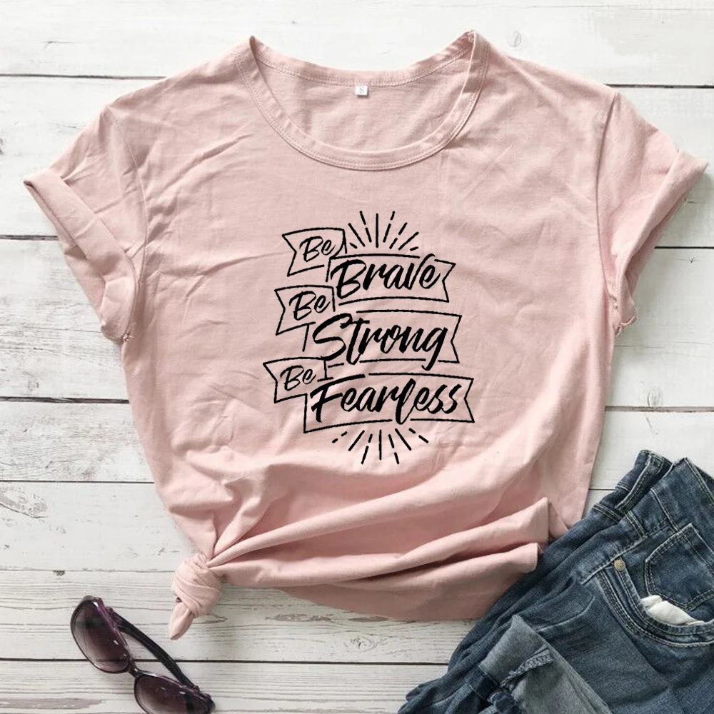 Be Brave Be Strong Be Fearless, христианская Библейская крещение, индивидуальная религия, Женская хлопковая футболка унисекс, гранж, футболки для молодых девушек, M079