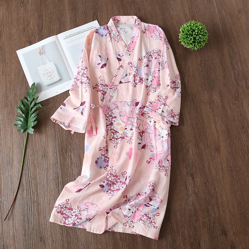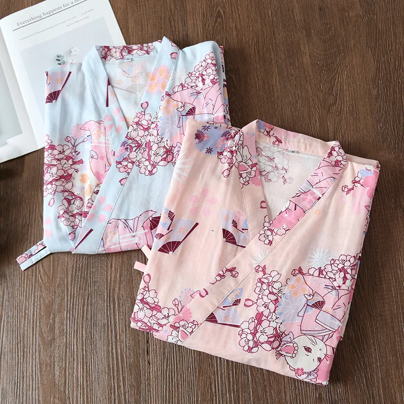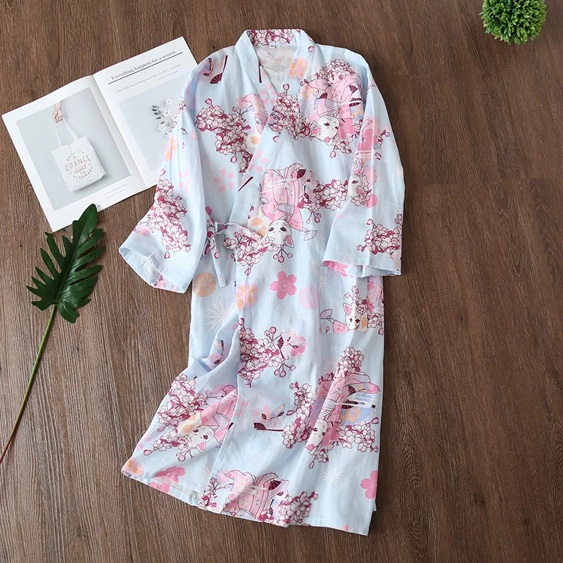 Японская ночная рубашка кимоно Женская хлопковая газовая Мужская пижама-кимоно, халат на пару, домашний сервис, летнее тонкое кимоно, кардиган, домашняя одежда