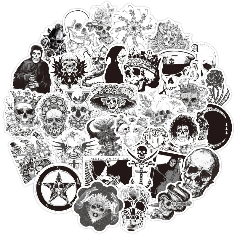 Наклейки с черепом в готическом стиле, чёрные, белые, клейкие стике...