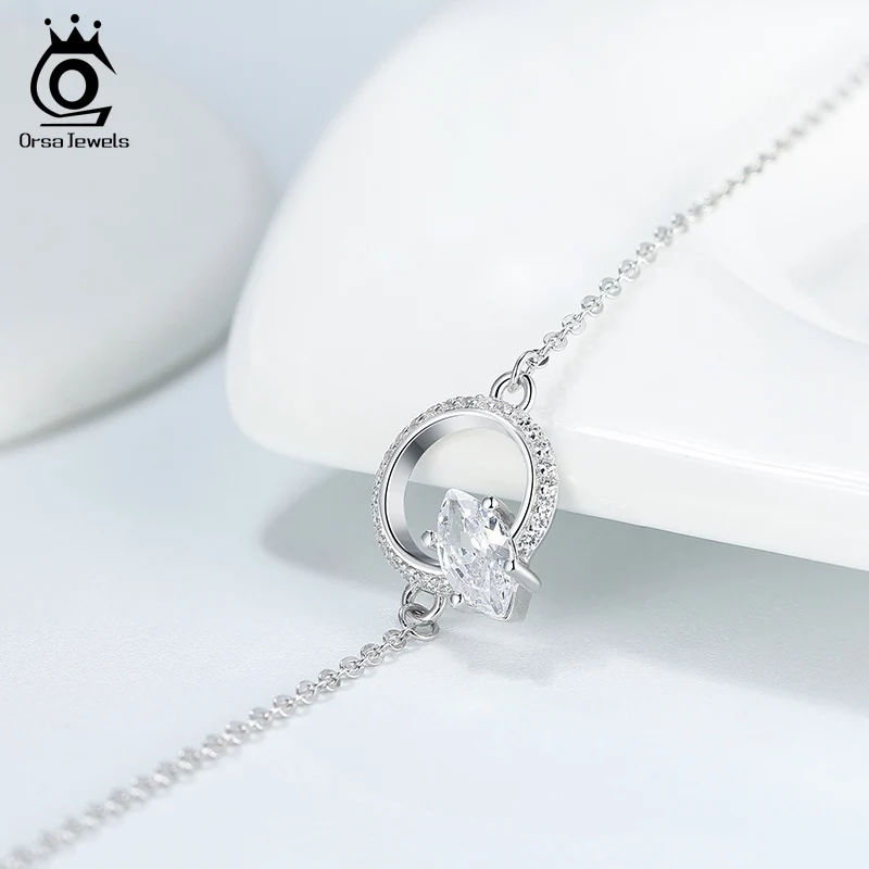 ORSA JEWELS стильный женский свадебный подлинный ювелирный набор из серебра 925 пробы с цирконием, серьги-гвоздики, браслет-цепочка на шею OSS117