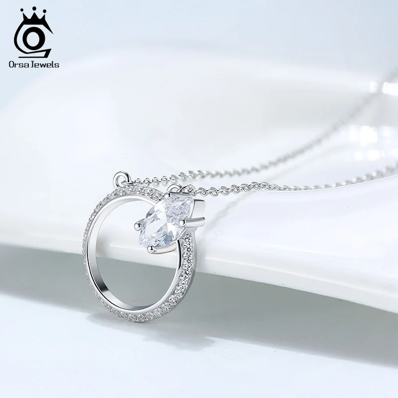 Ожерелье ORSA JEWELS с кулоном из фианита AAAA, стерлингового сереб...