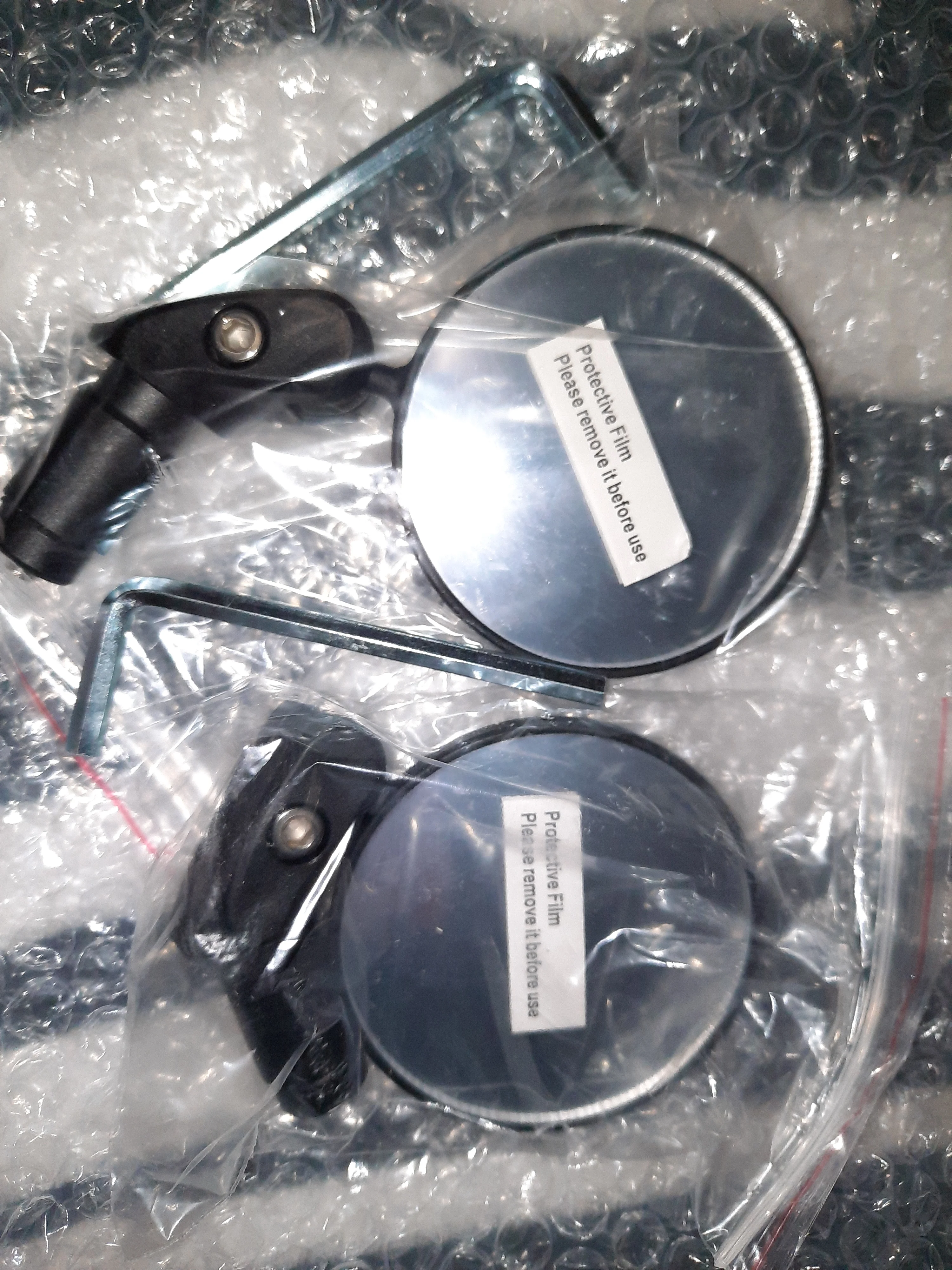 очень странные зеркала. на картинке они смотрят вверх, а на деле при креплении на левую часть руля зеркало смотрит вниз. штырь гораздо уже отверстия в руле - пришлось придумывать, чем зафиксировать. в комплекте идет шестигранник. оценю во время езды - дополню отзыв.