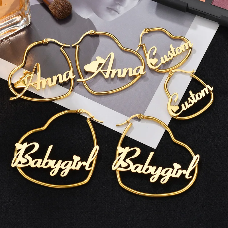 Женские серьги с именем, круглые, в форме сердца, серьги-капли
