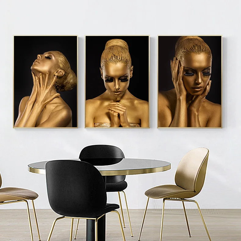 Роскошный золотой макияж, Женская Картина на холсте, настенные худо...