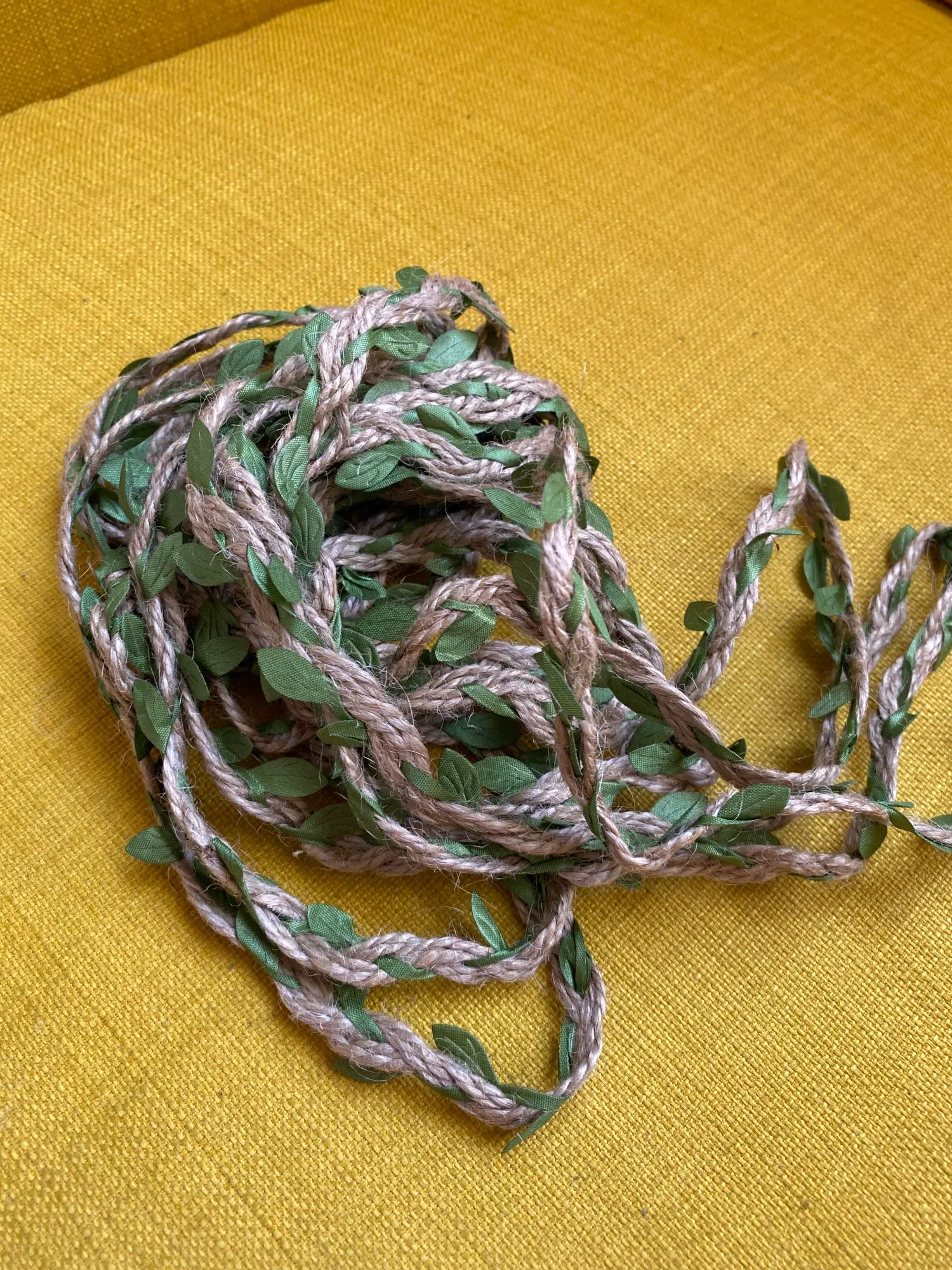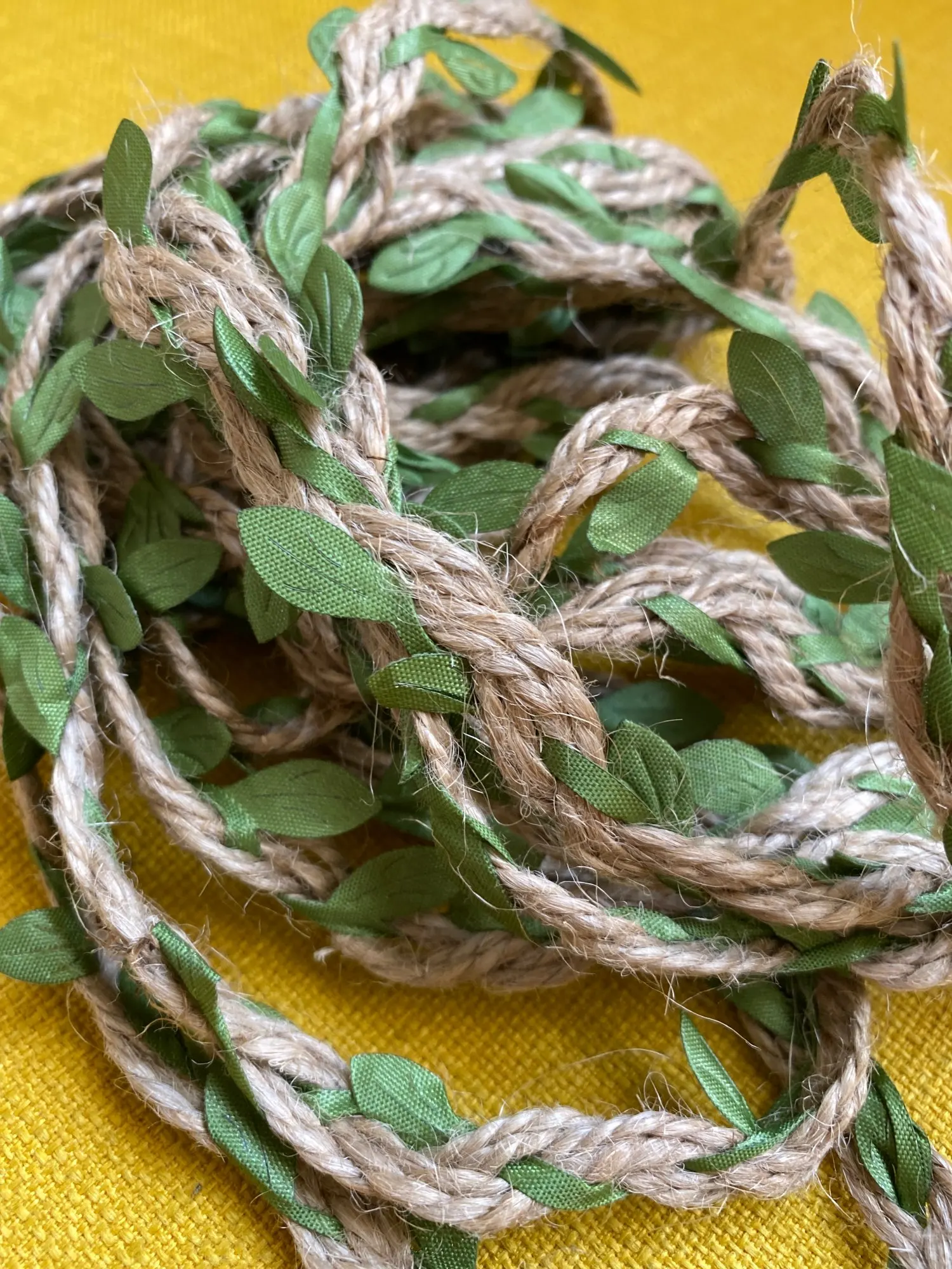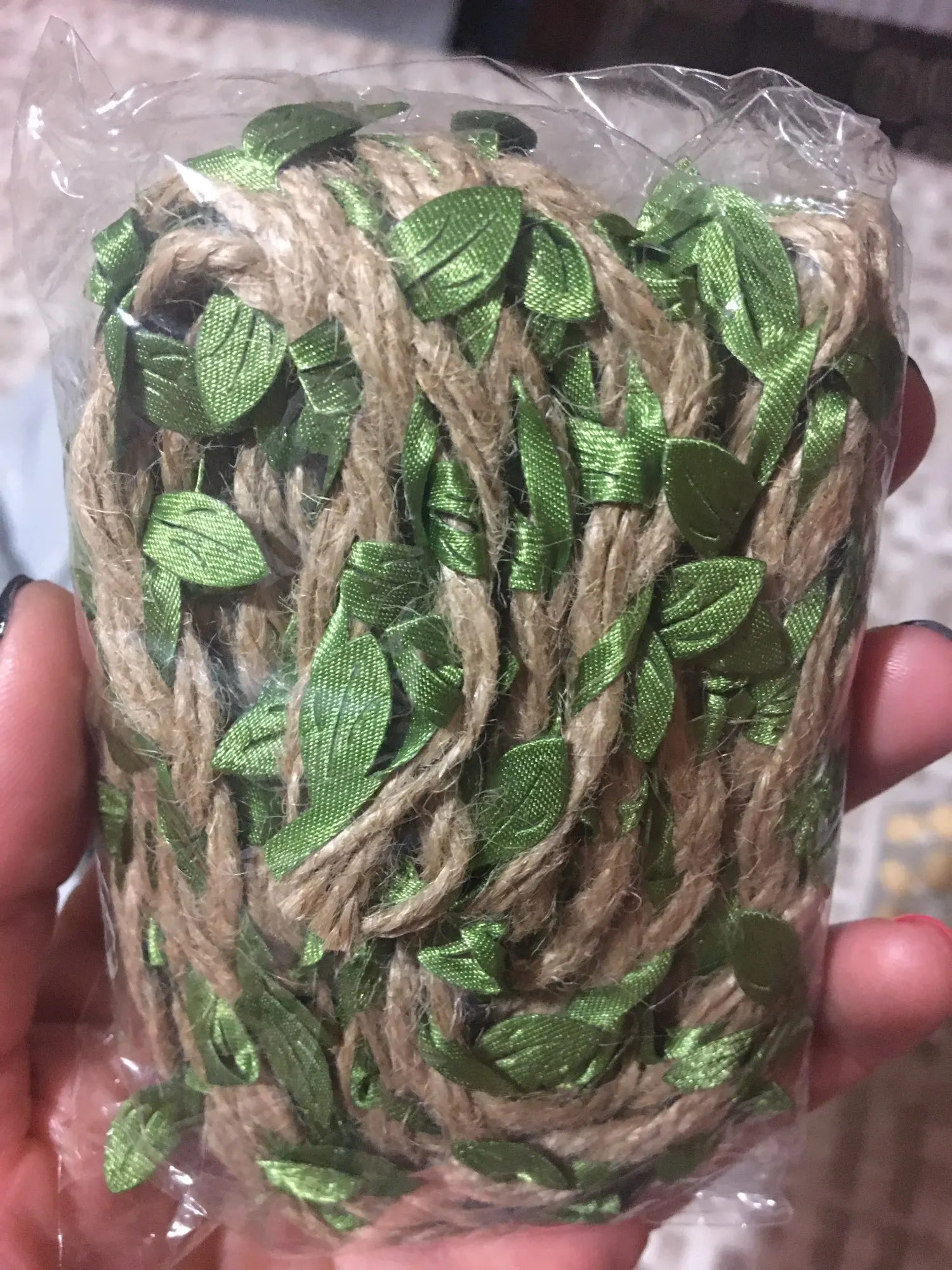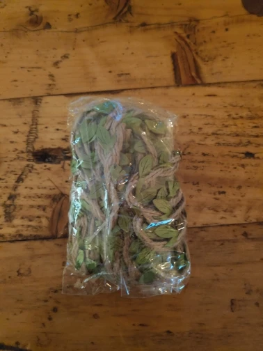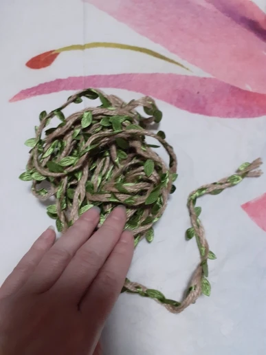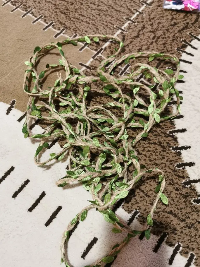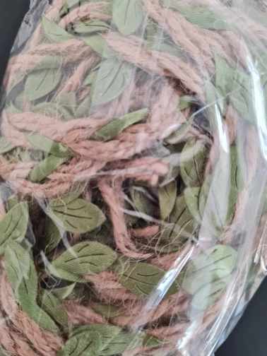 Хорошая веревочка, как на фото. Не рваная, качество прекрасное, листочки яркие.