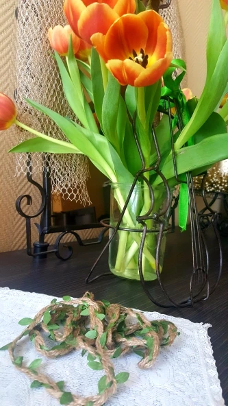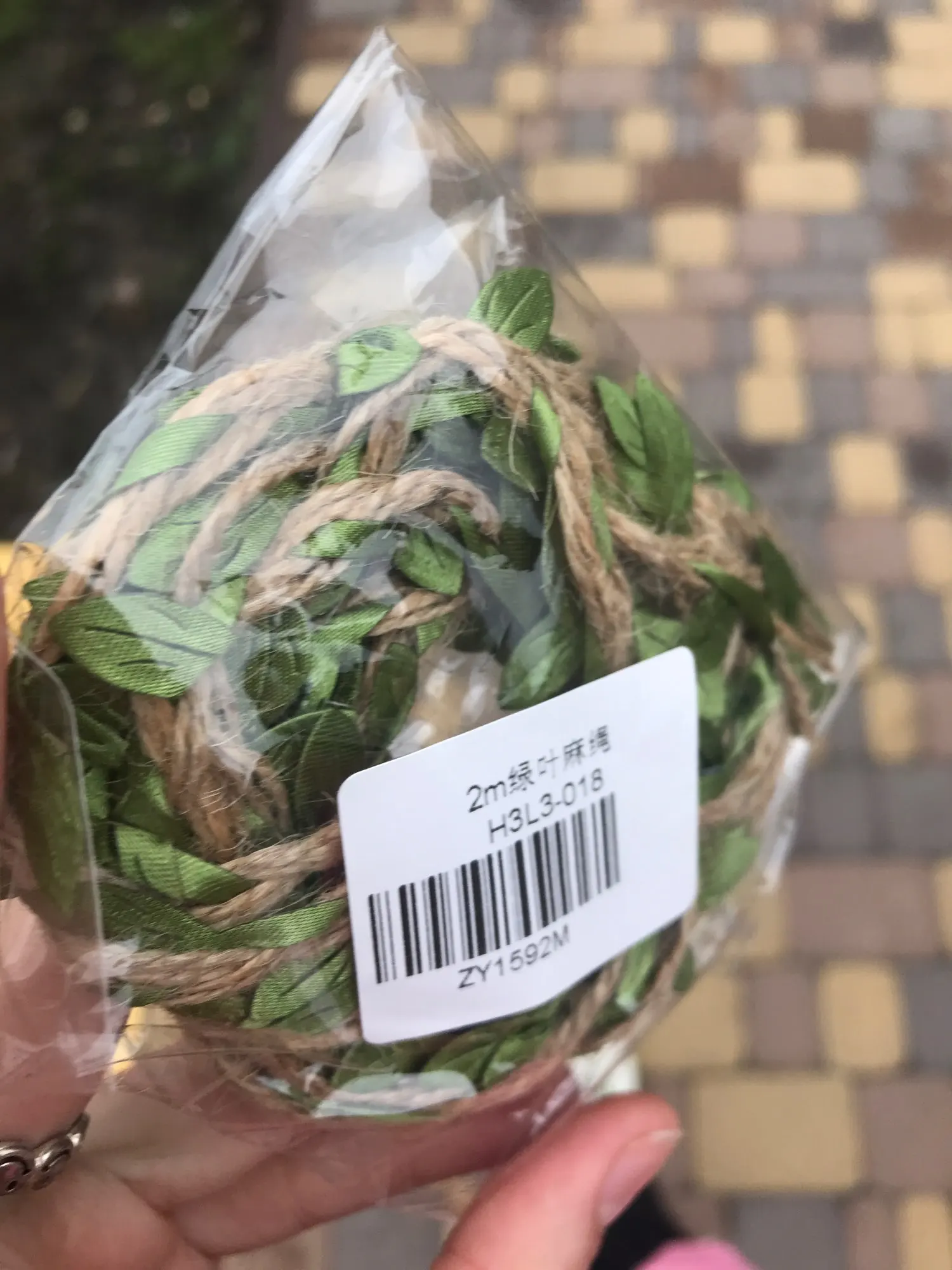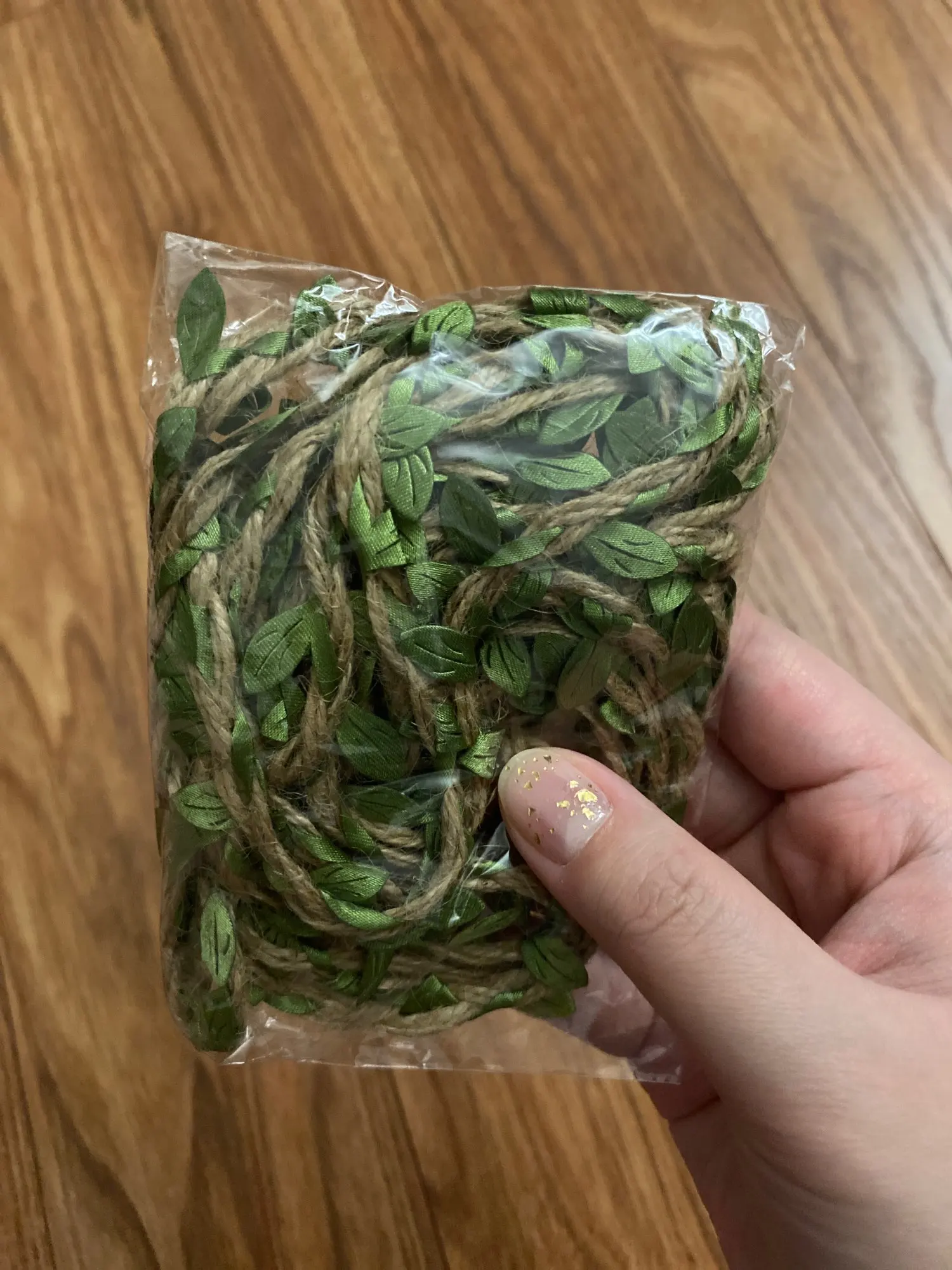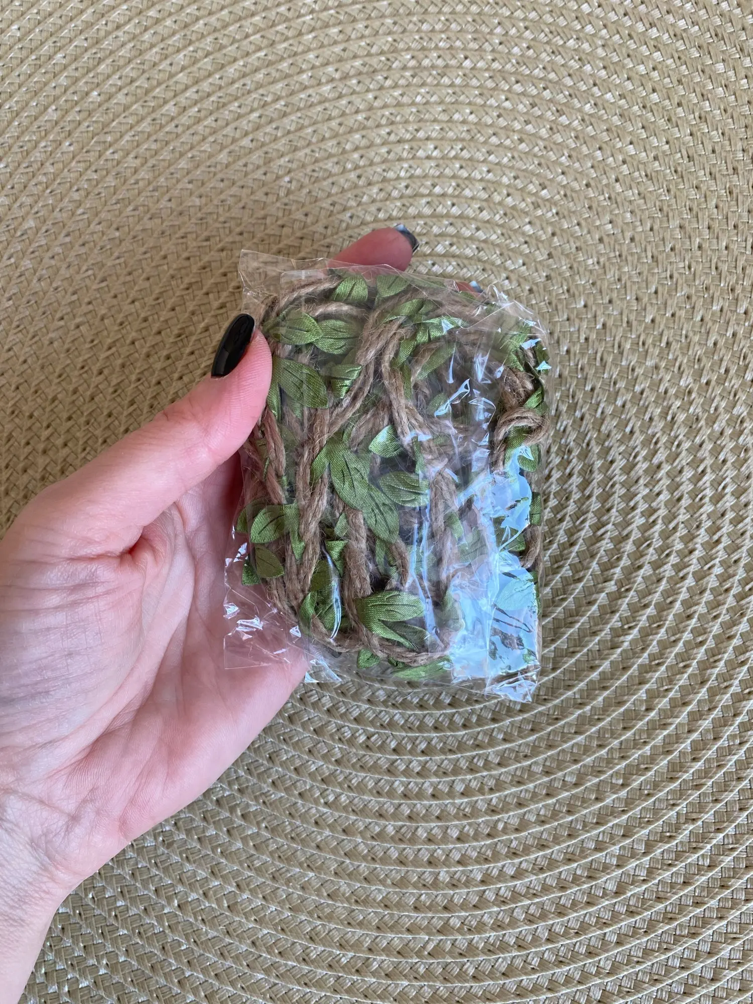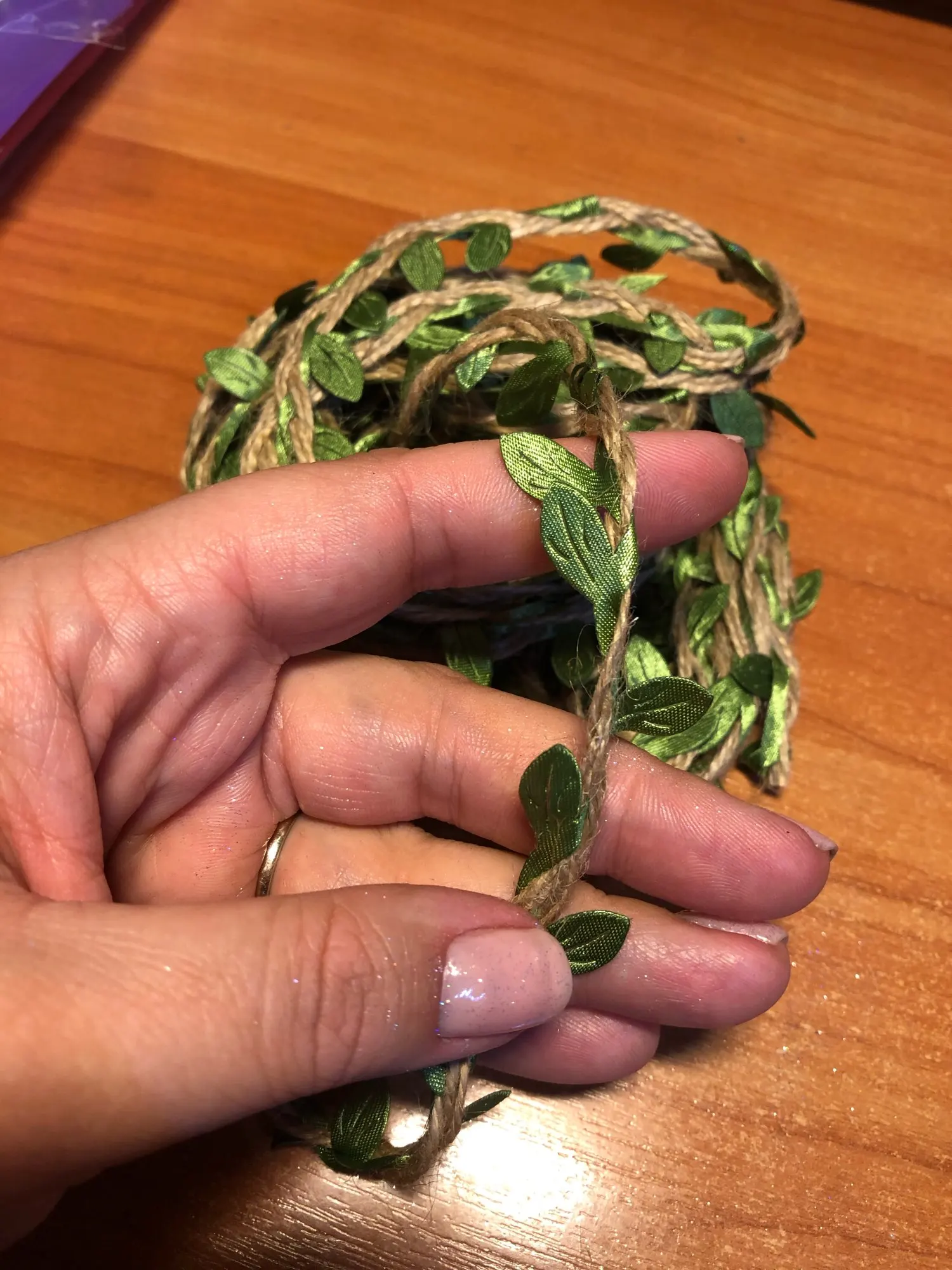 Хорошая веревочка, как на фото. Не рваная, качество прекрасное, листочки яркие.