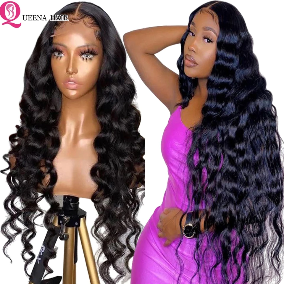 Парик Hd на фронтальной сетке al, свободные волнистые парики из натуральных волос на фронтальной сетке для женщин, парик на сетке 5x5, 30 дюймов, парик из натуральных волос на фронтальной сетке, свободный волнистый парик
