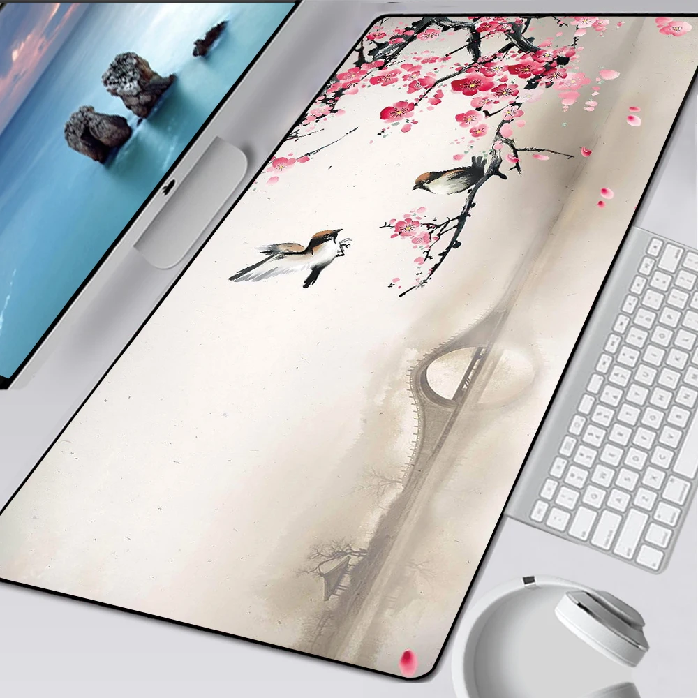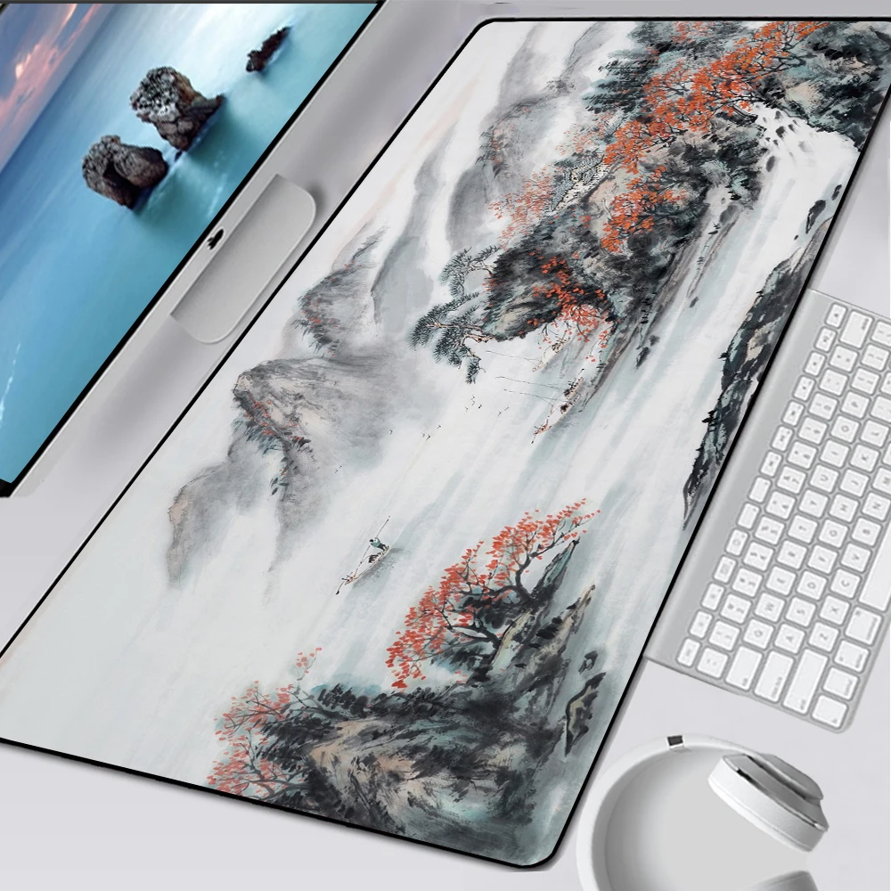Большой коврик для мыши с китайской живописью, 900x400 мм, большой игровой коврик для мыши с застежкой на краю, Эргономичный резиновый размер XL XXL, игровой скоростной игровой коврик