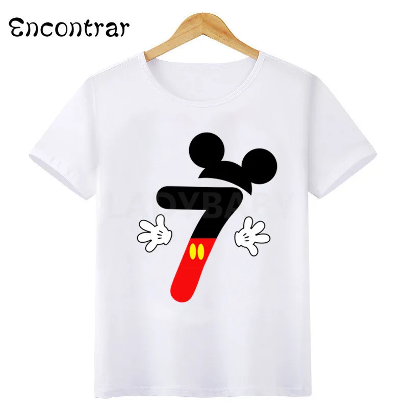 Детская Веселая футболка с рисунком, с номером на день рождения для маленьких мальчиков и девочек 1-10, с бантом, Детские Топы с коротким рукавом, HKP2438