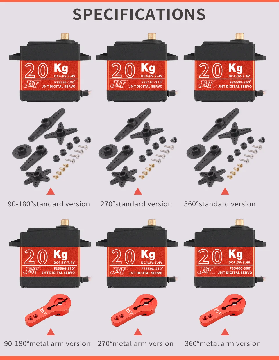 JMT водонепроницаемый цифровой сервопривод 90180270360 градусов RC сервопривод 20 кг металлическая Шестерня большой крутящий момент с 25T рычагом для автомобилей RC игрушка
