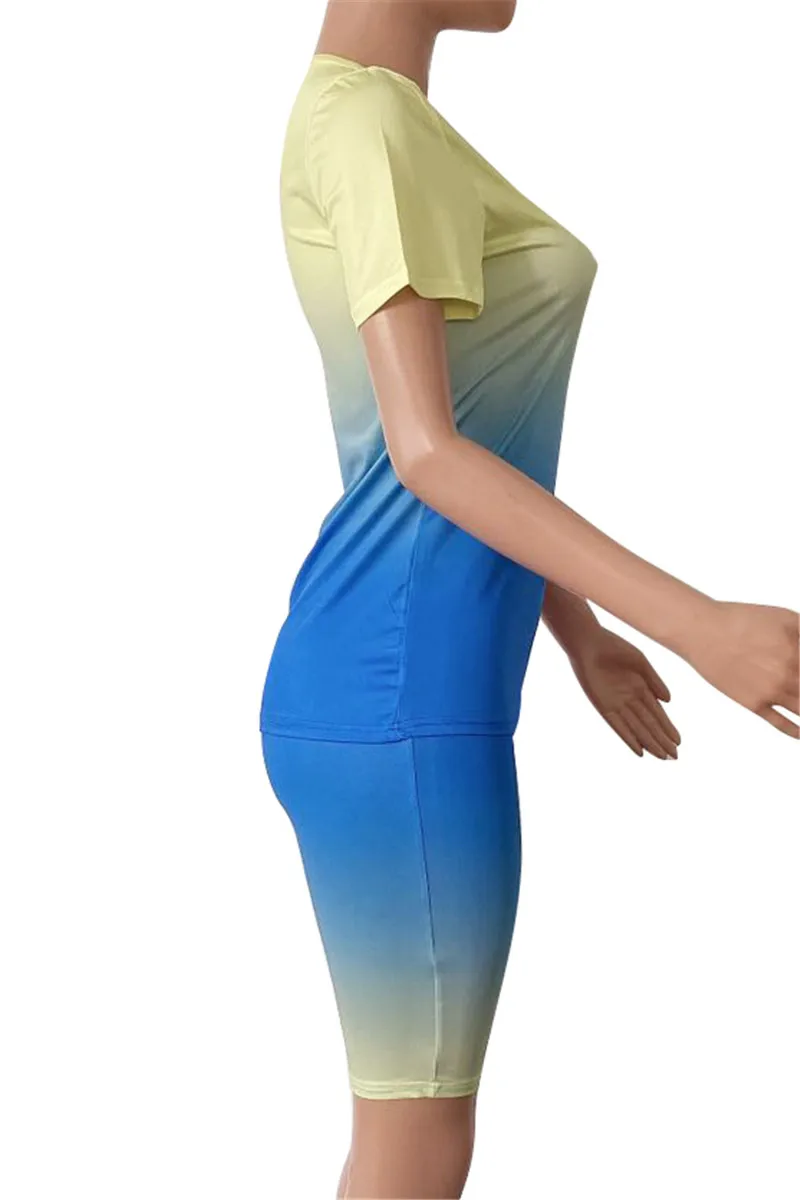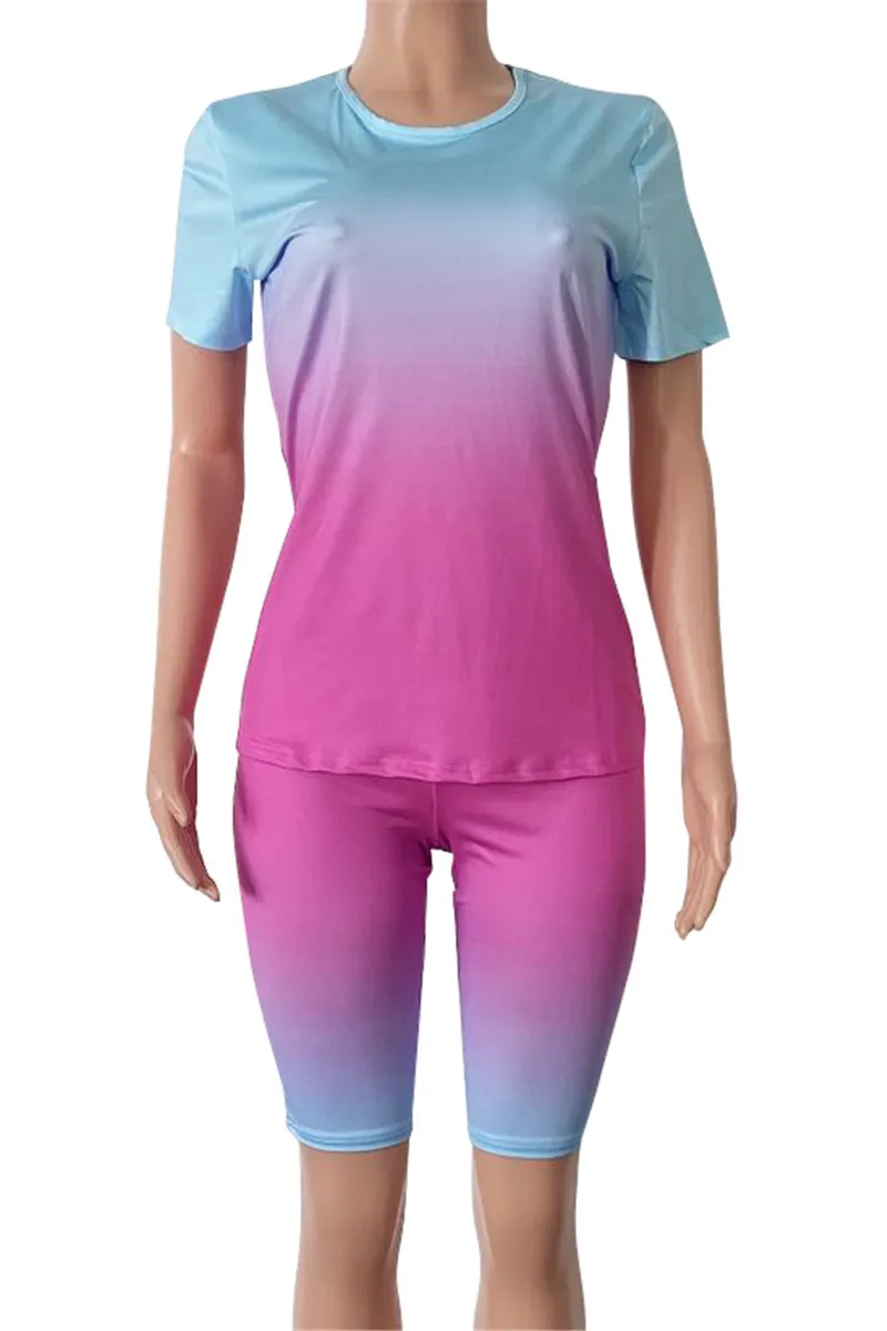 Женский Повседневный Спортивный костюм с градиентом, укороченный топ и шорты для йоги, тренировочный костюм, домашний костюм