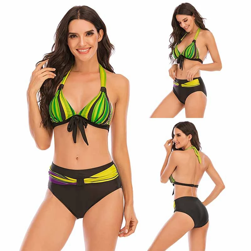 Женское бикини в радужную полоску, неоновое бикини с бантом, размера плюс, 2020