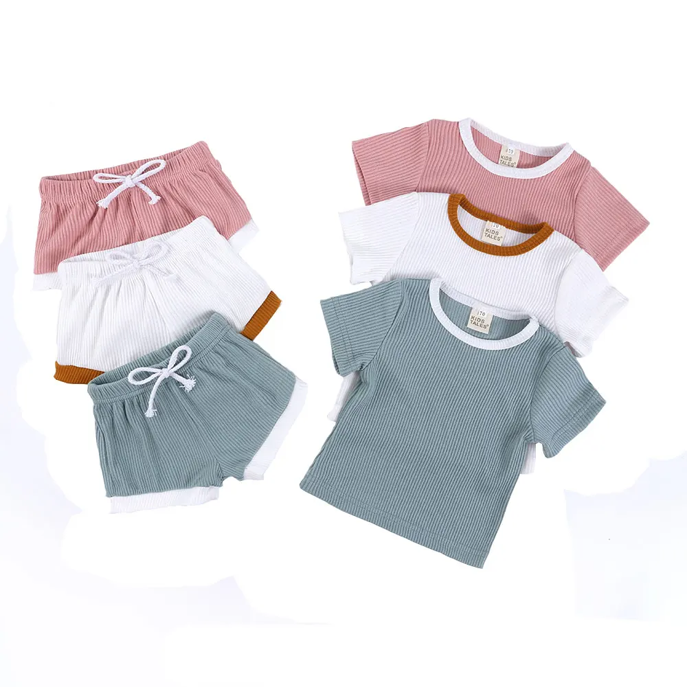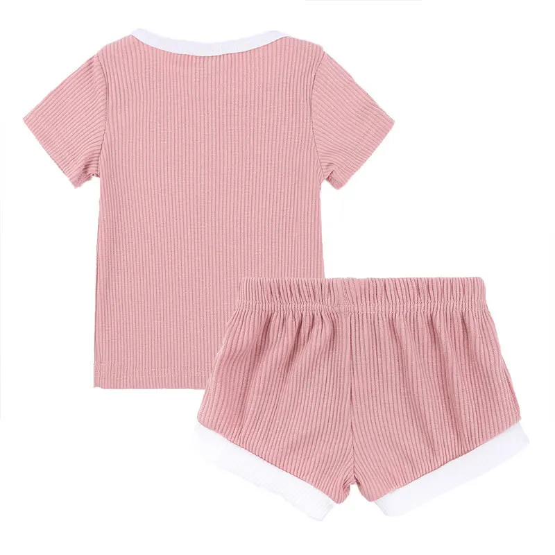 Комплект одежды хлопковый однотонный с коротким рукавом и шортами, на возраст 6-24 месяцев