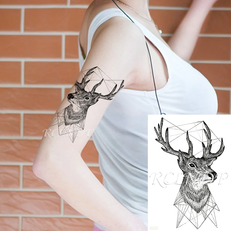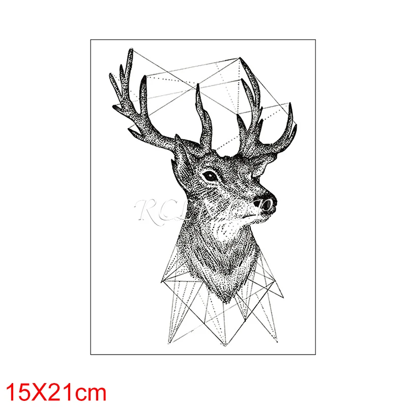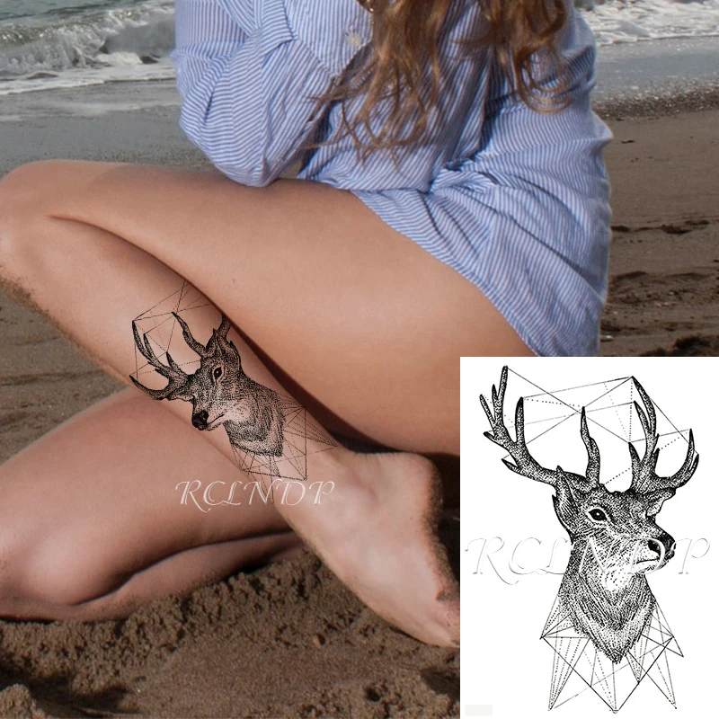 Водонепроницаемая Временная тату-наклейка олень рога Мода геоматиче...