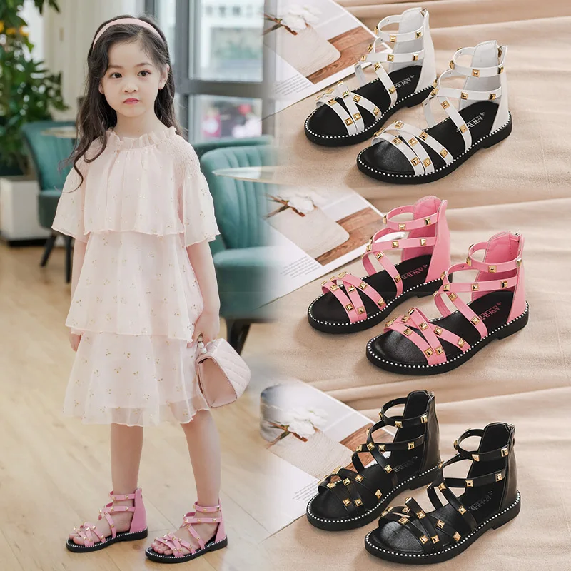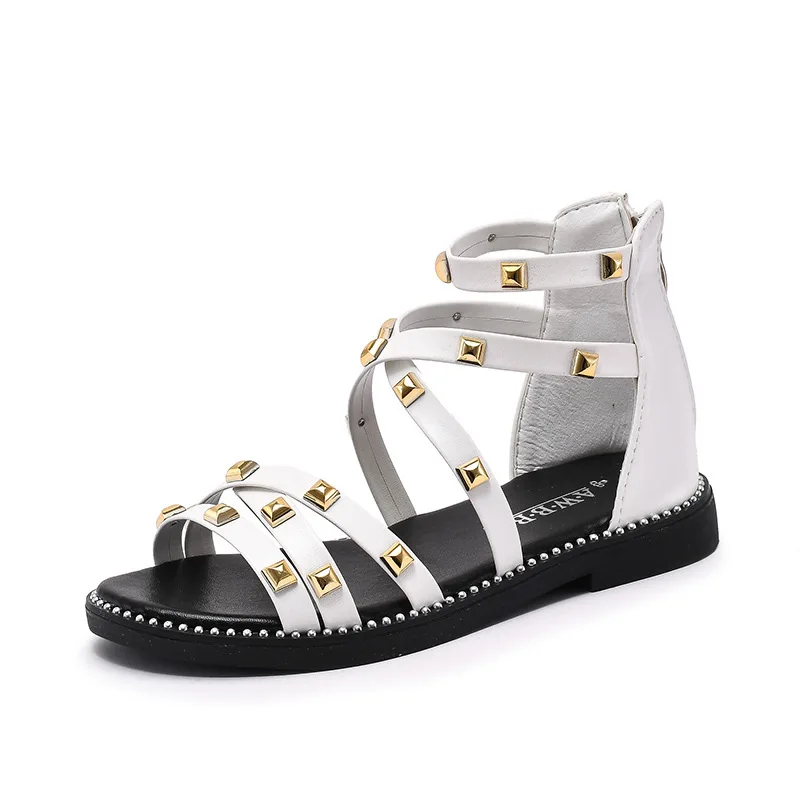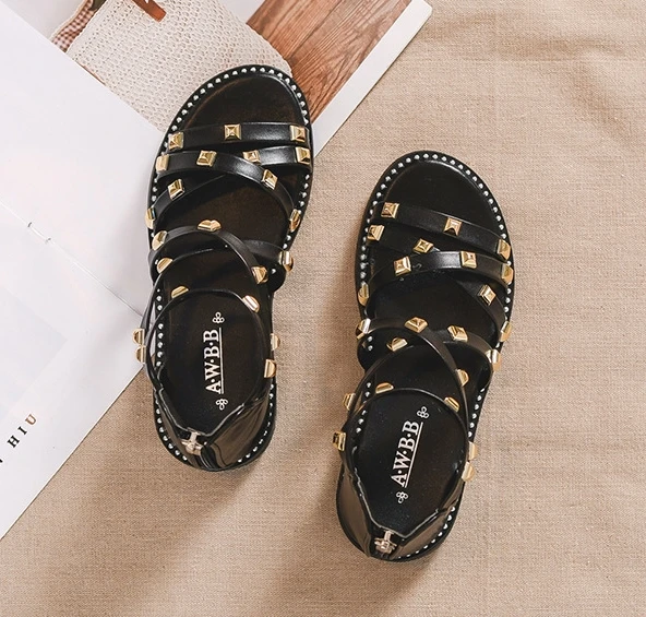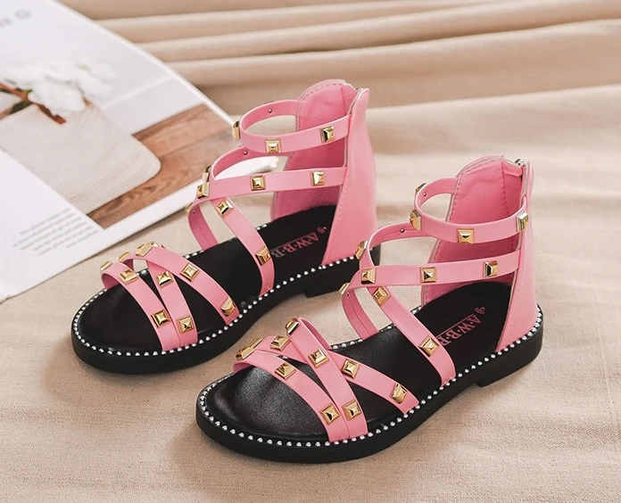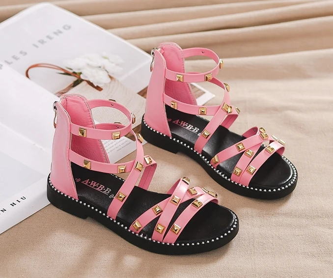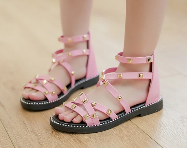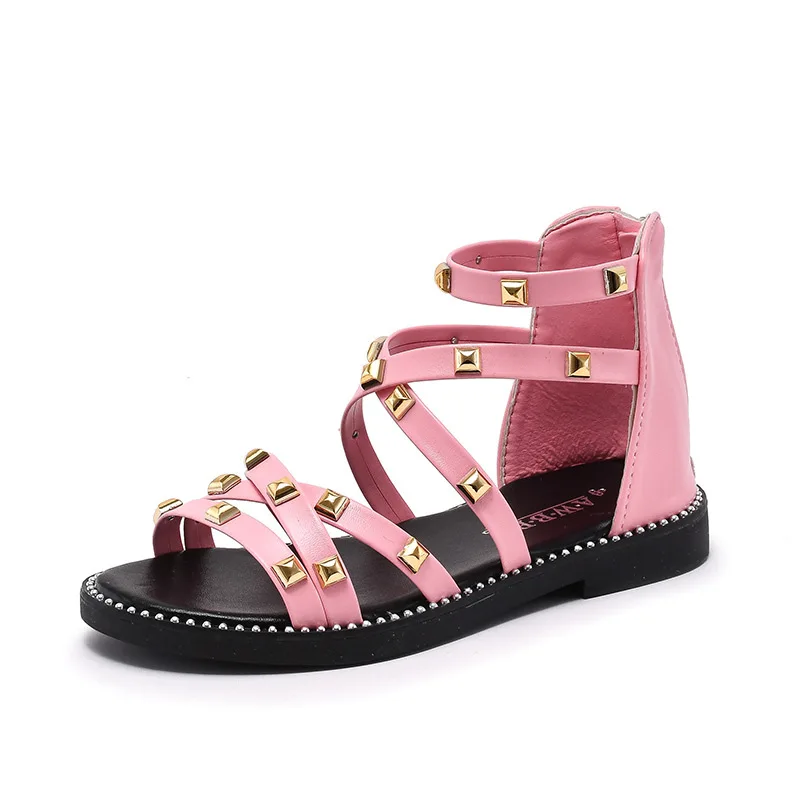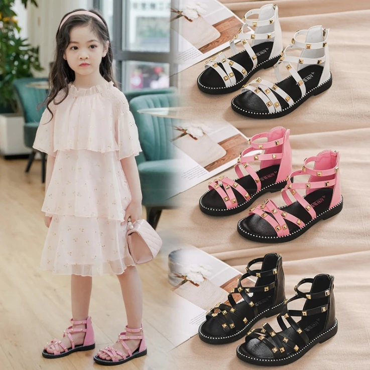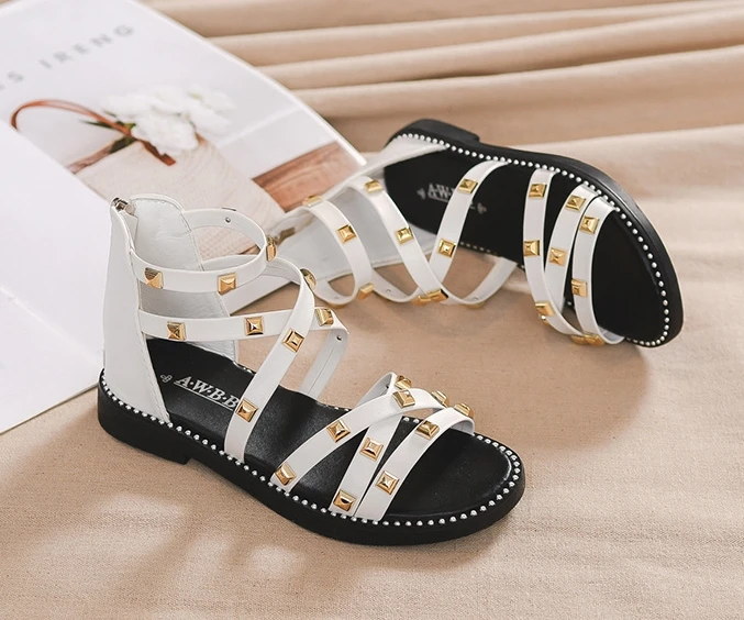 Сандалии с заклепками для девочек, новинка 2020, летняя детская обувь в римском стиле, Корейская обувь для детей среднего и маленького возраста, обувь принцессы для начальной школы