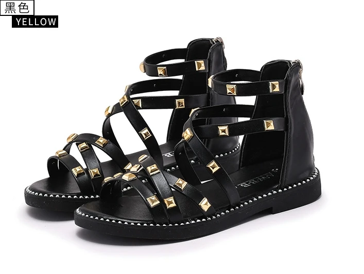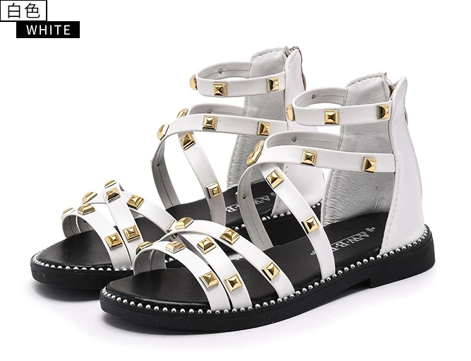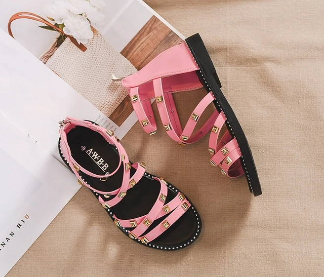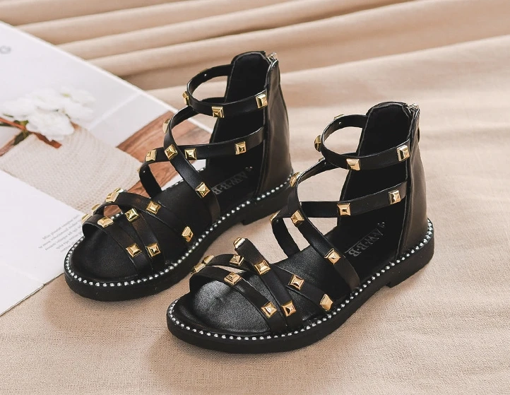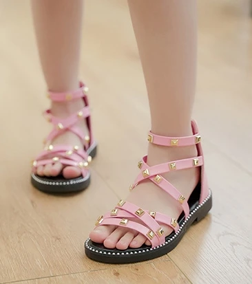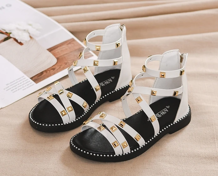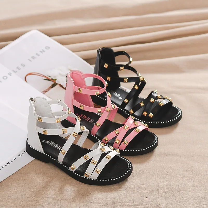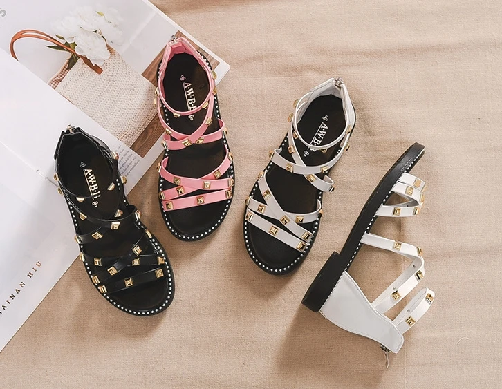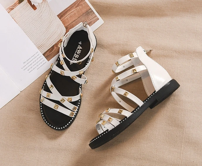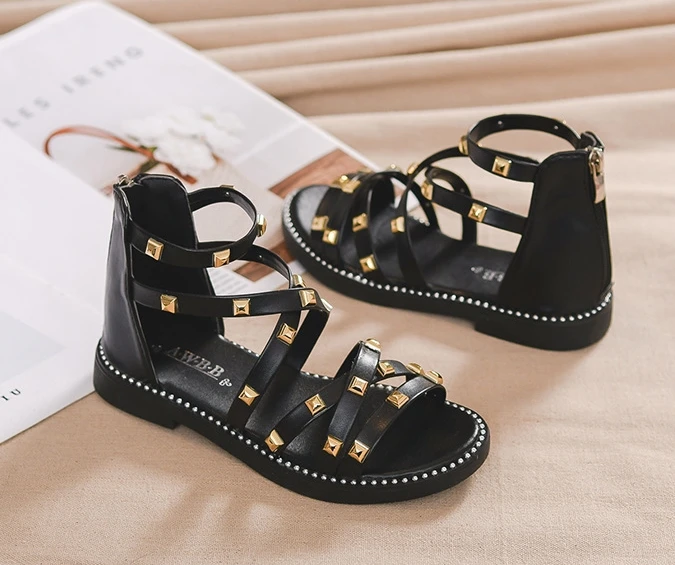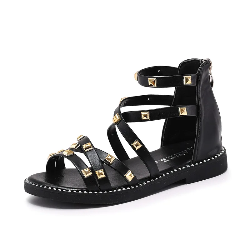 Сандалии с заклепками для девочек, новинка 2020, летняя детская обувь в римском стиле, Корейская обувь для детей среднего и маленького возраста, обувь принцессы для начальной школы