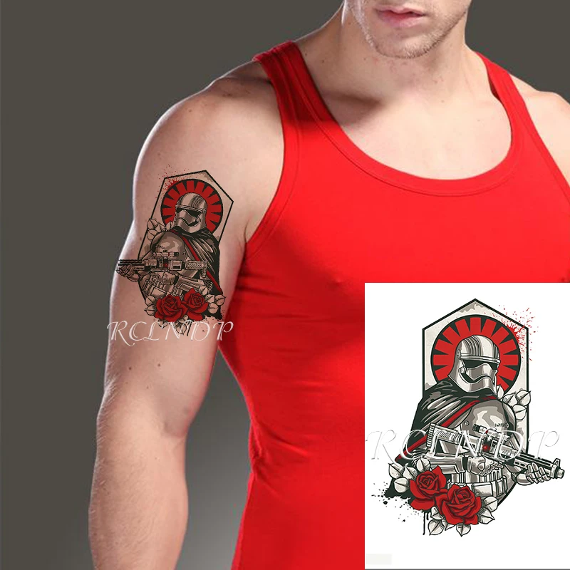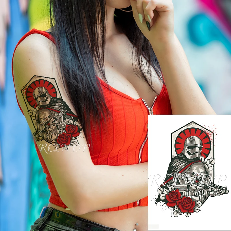 Водостойкая Временная тату-наклейка "Звездные войны", Броня розы, воин с пистолетом, искусственная тату флэш-тату, искусство рук для мужчин, женщин и мужчин