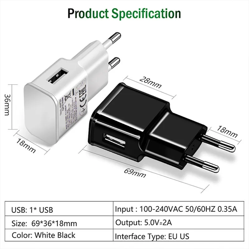 Настенное зарядное устройство USB 5 В, 2 А для Samsung S21, S20, S1...