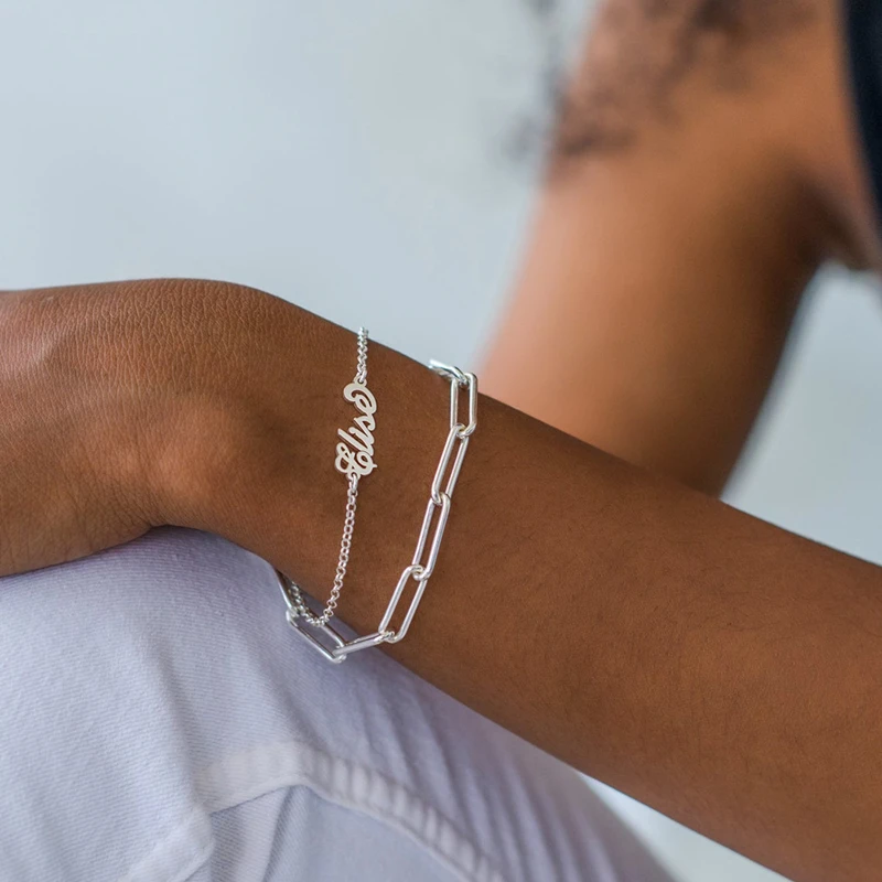 Виды красивых шрифтов именной браслет очаровательные ювелирные изделия из нержавеющей стали звенья цепи персонализированные буквы на заказ браслет лучшие подарки