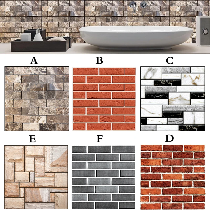Водонепроницаемые 3D наклейки на стену, самоклеящиеся Стикеры из ПВХ с кирпичным камнем для плитки, гостиной, кухни, ванной