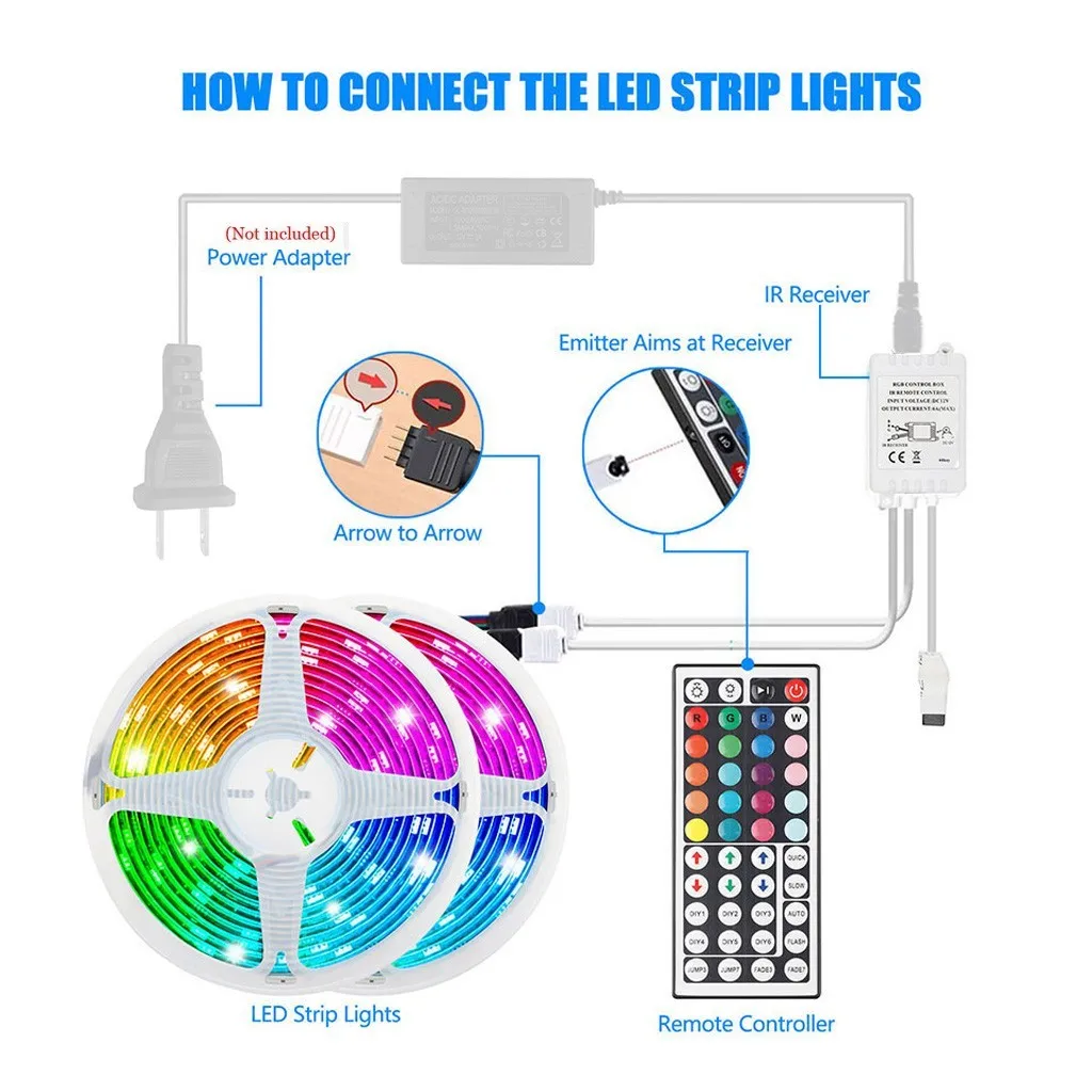Светодиодная лента 32,8 SMD RGB 5050, 10 м, 300 футов + ИК-пульт ДУ с 44 кнопками