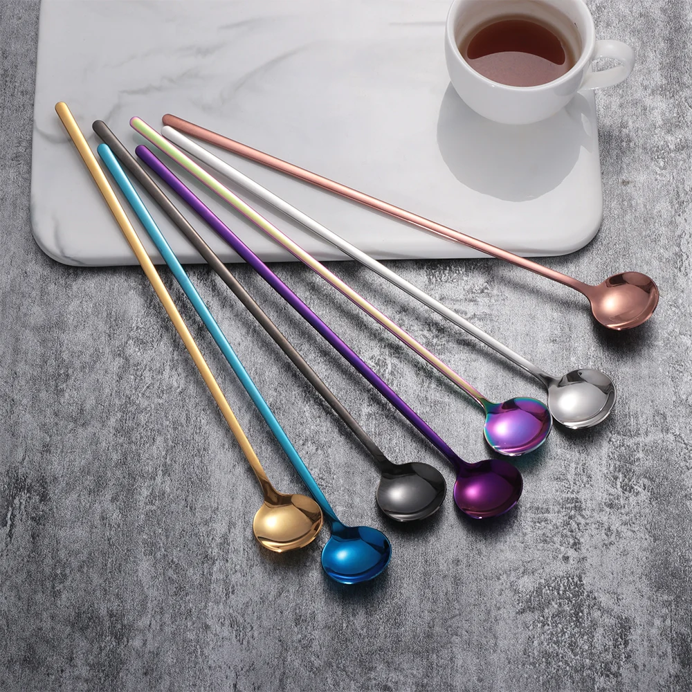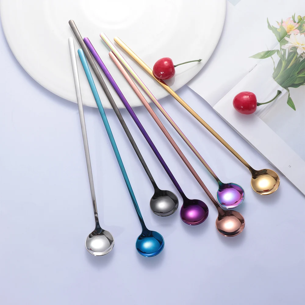1 шт. радужные цвета с длинной ручкой кофейные ложки экологически чистые ложки для мороженого из нержавеющей стали ложки для перемешивания посуда кухонные принадлежности