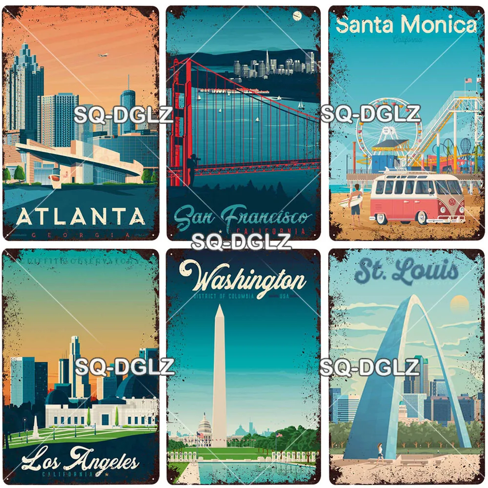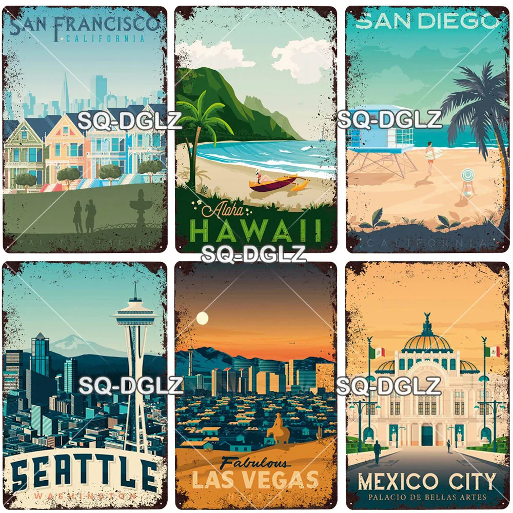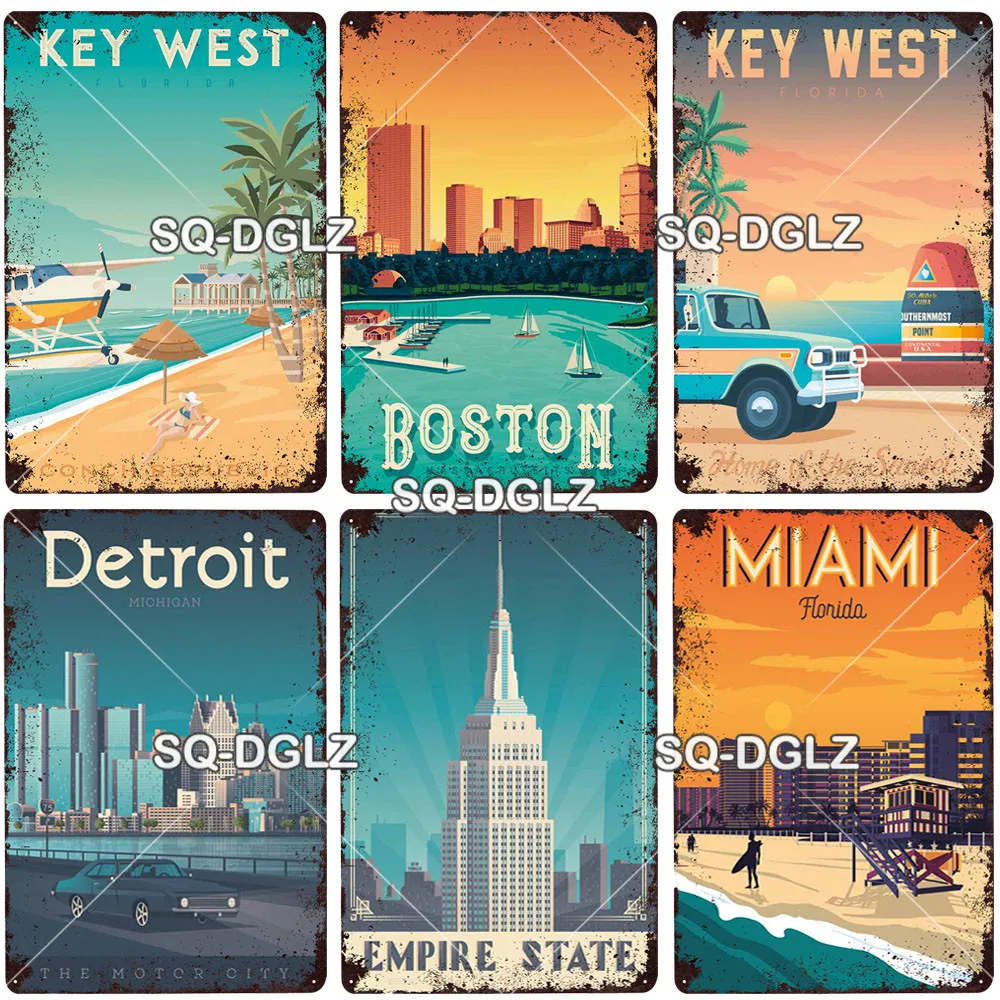Металлическая табличка с пейзажем, винтажная металлическая табличка для путешествий, декор для бара, домашнего декора, жестяная вывеска в Лас-Вегасе, Бостонский постер, SQ-DGLZ