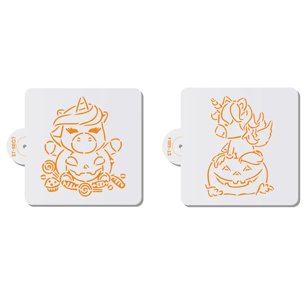 Трафарет для печенья, трафарет для кофе с изображением единорога и тыквы, трафарет для Хэллоуина, трафарет, трафарет для конфет, печенья, форма для торта, инструмент для украшения тортов, 2 шт.компл.