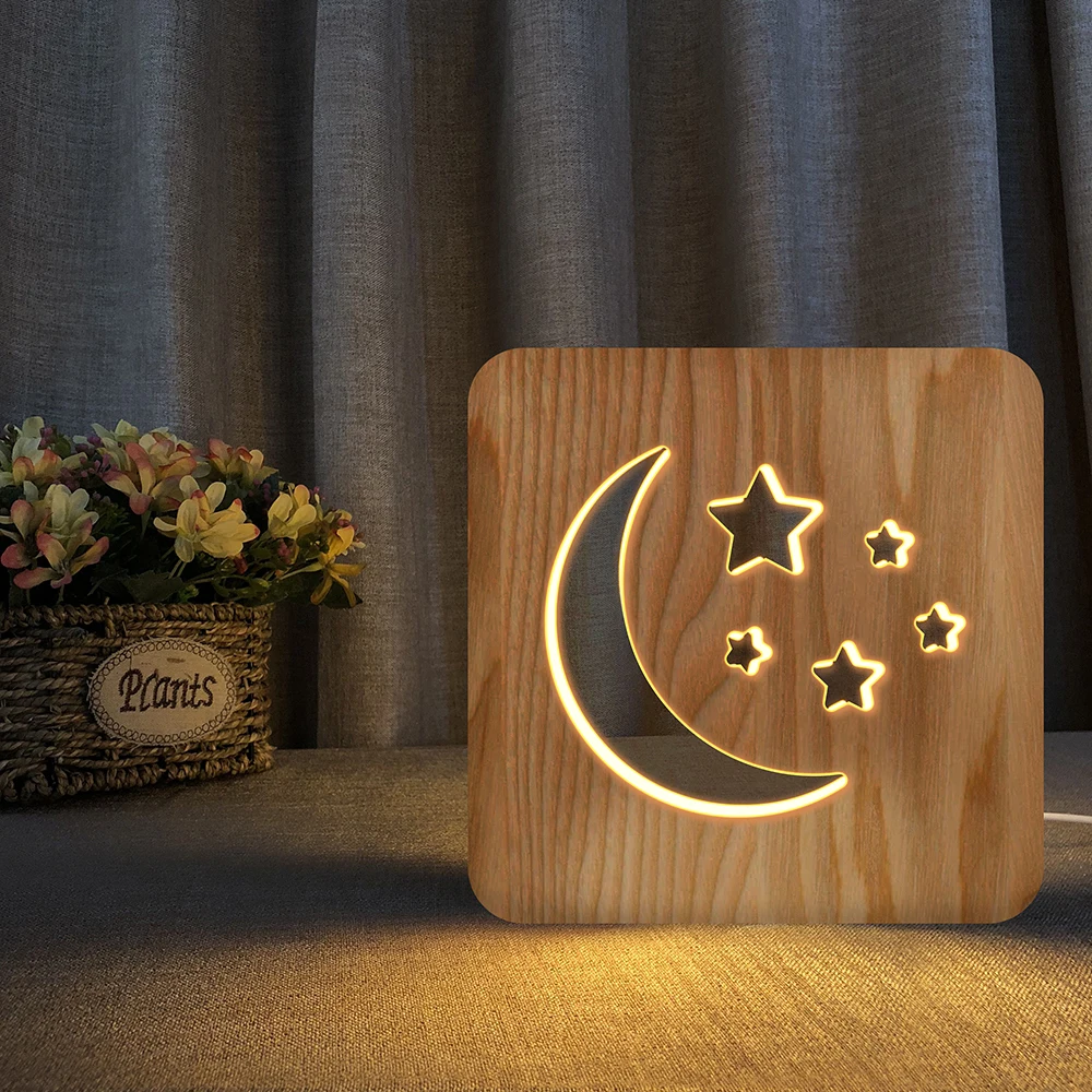 3D Светодиодная деревянная декоративная лампа, украшение для детско...