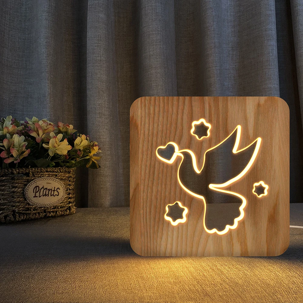 3D светодиодный деревянный ночник Diamond Love, ажурная Настольная ...