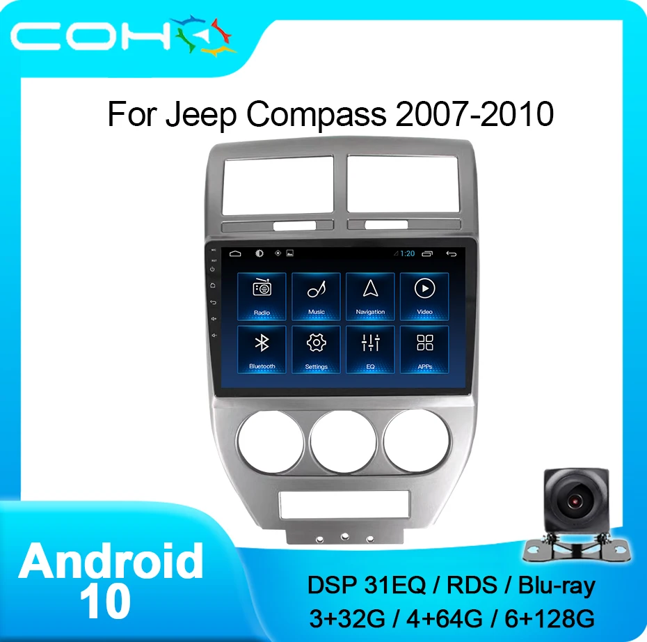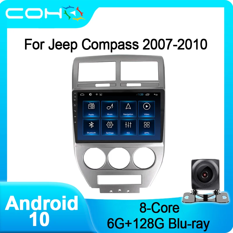 Автомобильный стерео-проигрыватель для Jeep Compass 2007-2010, Android 10,0, 8-ядерный, 6 + 128G