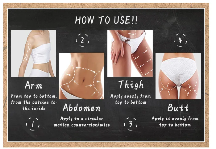 После купания с горячей водой каждую ночь равномерно наносите необходимое количество этого средства на конечности и кожу талии, которые нуждаются в бодибилдинге. Помассируйте ладонями для впитывания.