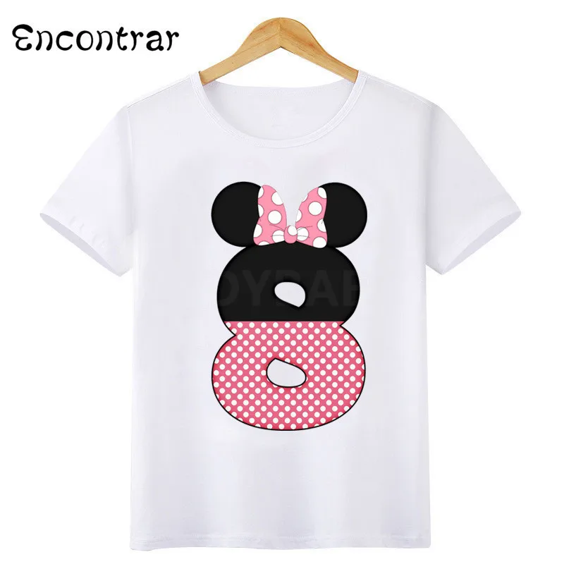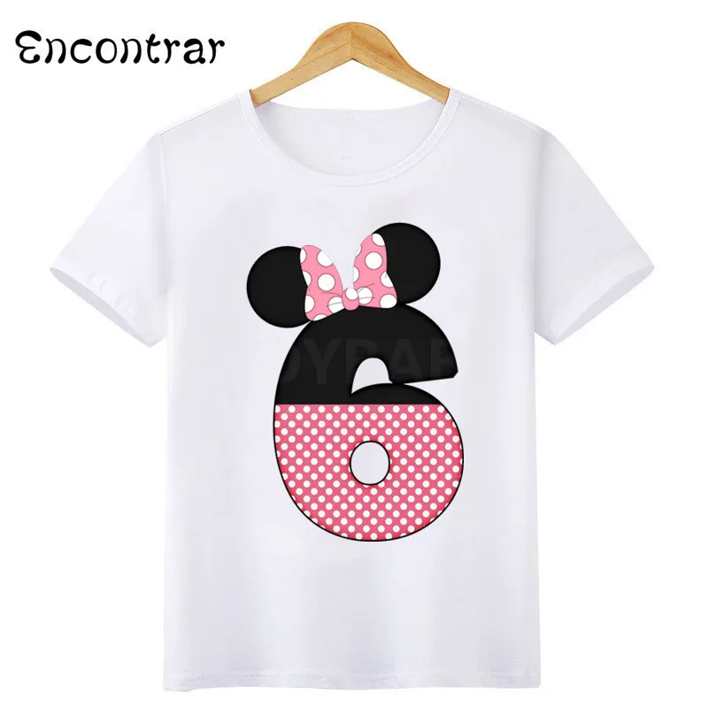 Детская Футболки с мышью с рисунком для маленьких девочек с днем рождения, Милая футболка с бантом, 1-9 лет Детские топы с короткими рукавами HKP3057
