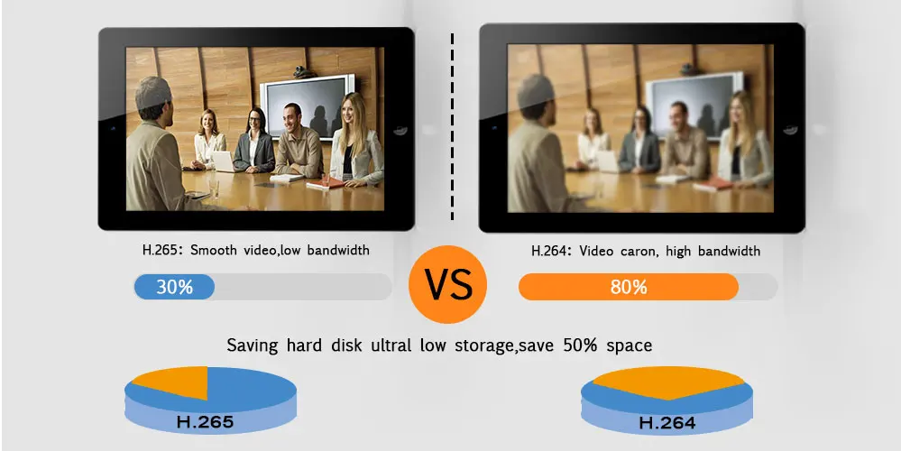 H.265 (HEVC) удваивает эффективность кодирования по сравнению с его предыдущей H.264. H.265 видео экономит около 50% битов при одинаковом качестве кодирования. H.265 требует только меньше полосы пропускания, более быстрой скорости загрузки, более плавного видео, более низкой скорости укуса, более высокого качества изображения!