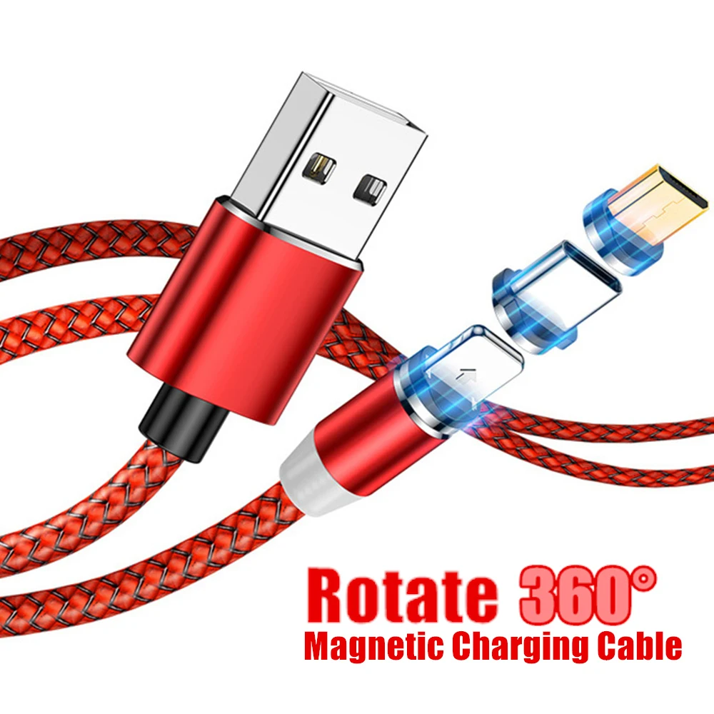 Магнитный зарядный кабель Micro USB Type-C, с поворотом на 360 град...