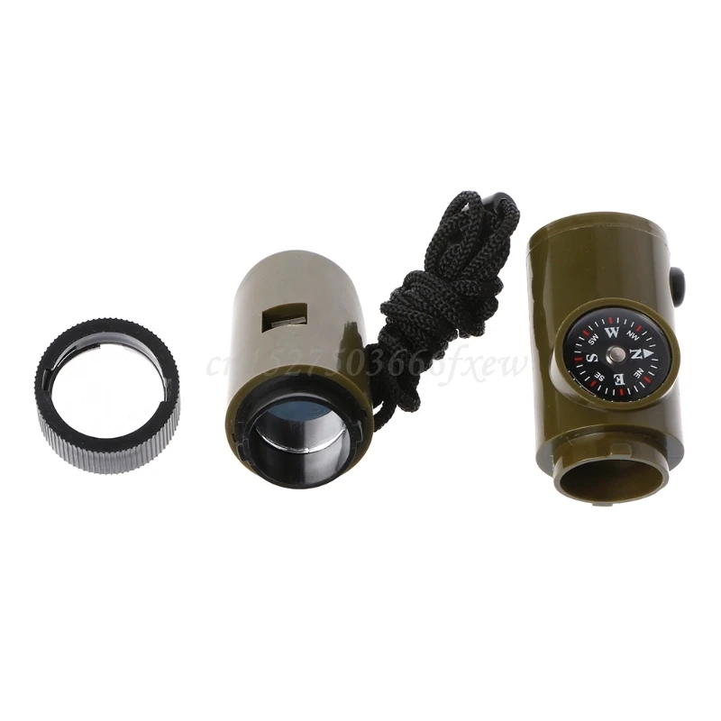 7 в 1 полевая Выживание свисток с компасом и термометром фонарь Лупа на открытом воздухе