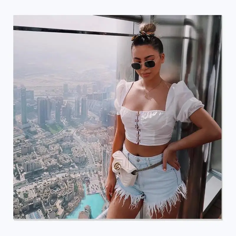 Женская однотонная блузка с квадратным вырезом, летняя пикантная рубашка с коротким рукавом-фонариком, дамские блузки с короткой пряжкой, топы, новинка 2020