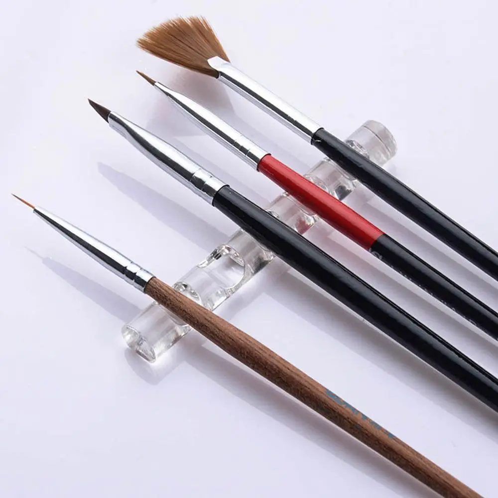 100% новый и высокое качествоВмещает 5 ручек для ногтейПортативный и легкийСтильный дизайнМатериал: акрилРазмеры: 8*1*0,8 смВес: 6 гЦвет: черный, розовый, прозрачныйПосылка: 1/3 шт. подставка для ногтей