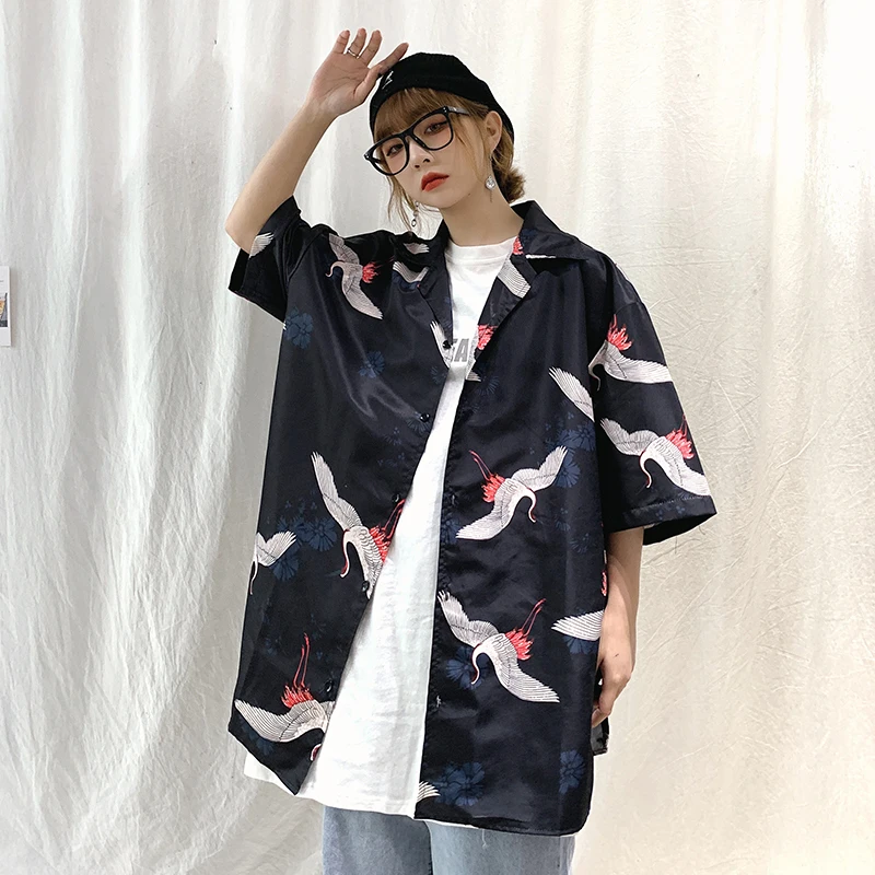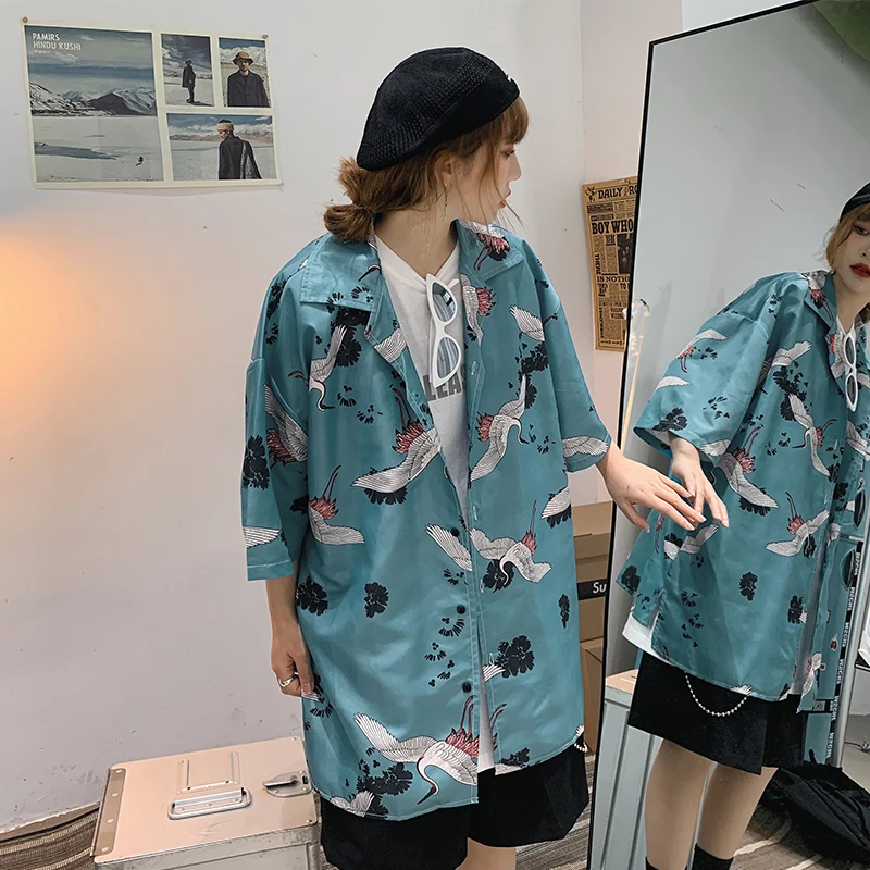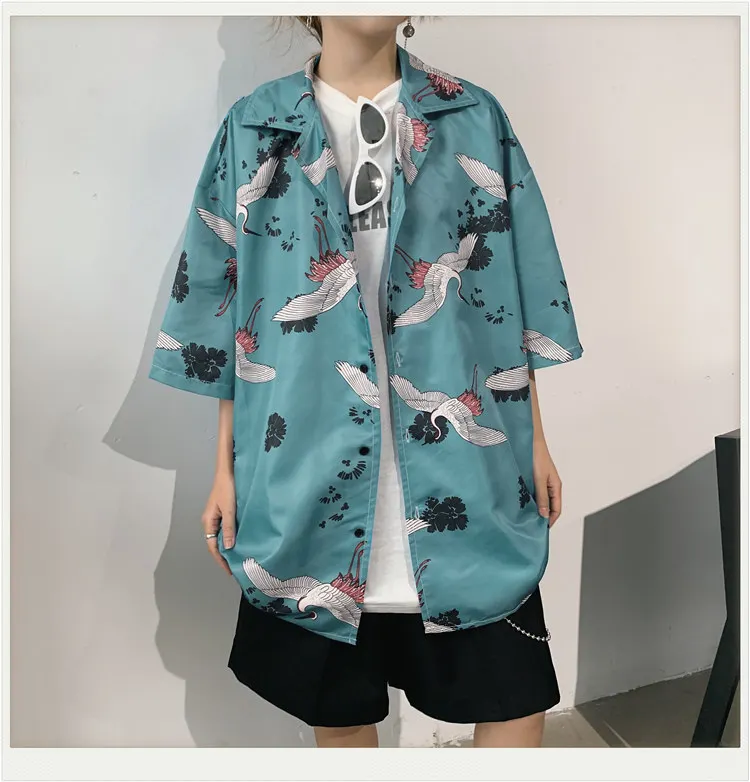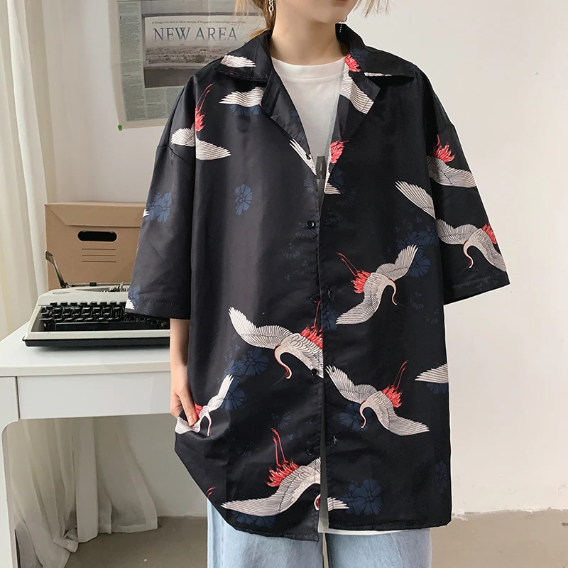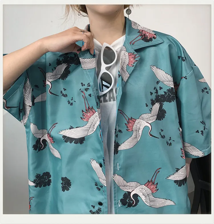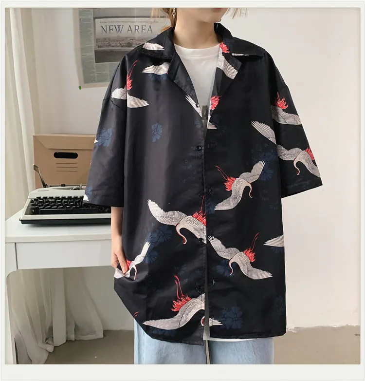 Винтажная летняя блузка для мужчин и женщин, свободная рубашка в японском стиле, топы большого размера, кардиган, Пляжная Гавайская одежда, Прямая поставка