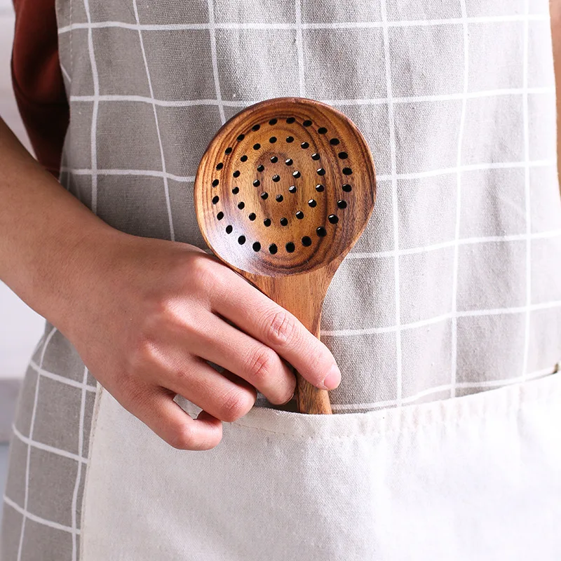 Набор кухонных принадлежностей из 7 предметов, деревянная Антипригарная посуда из тика, лопатка черпак, кухонная ложка для супа