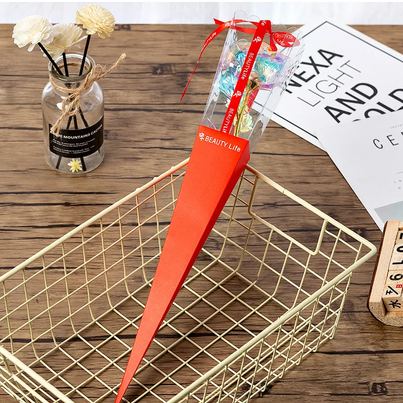Креативный подарок на день Святого Валентина, 24 к Золотая фольга, розовые цветы, светящийся цветной фонарь, коробка, вечная любовь, Свадебный декор, одна роза